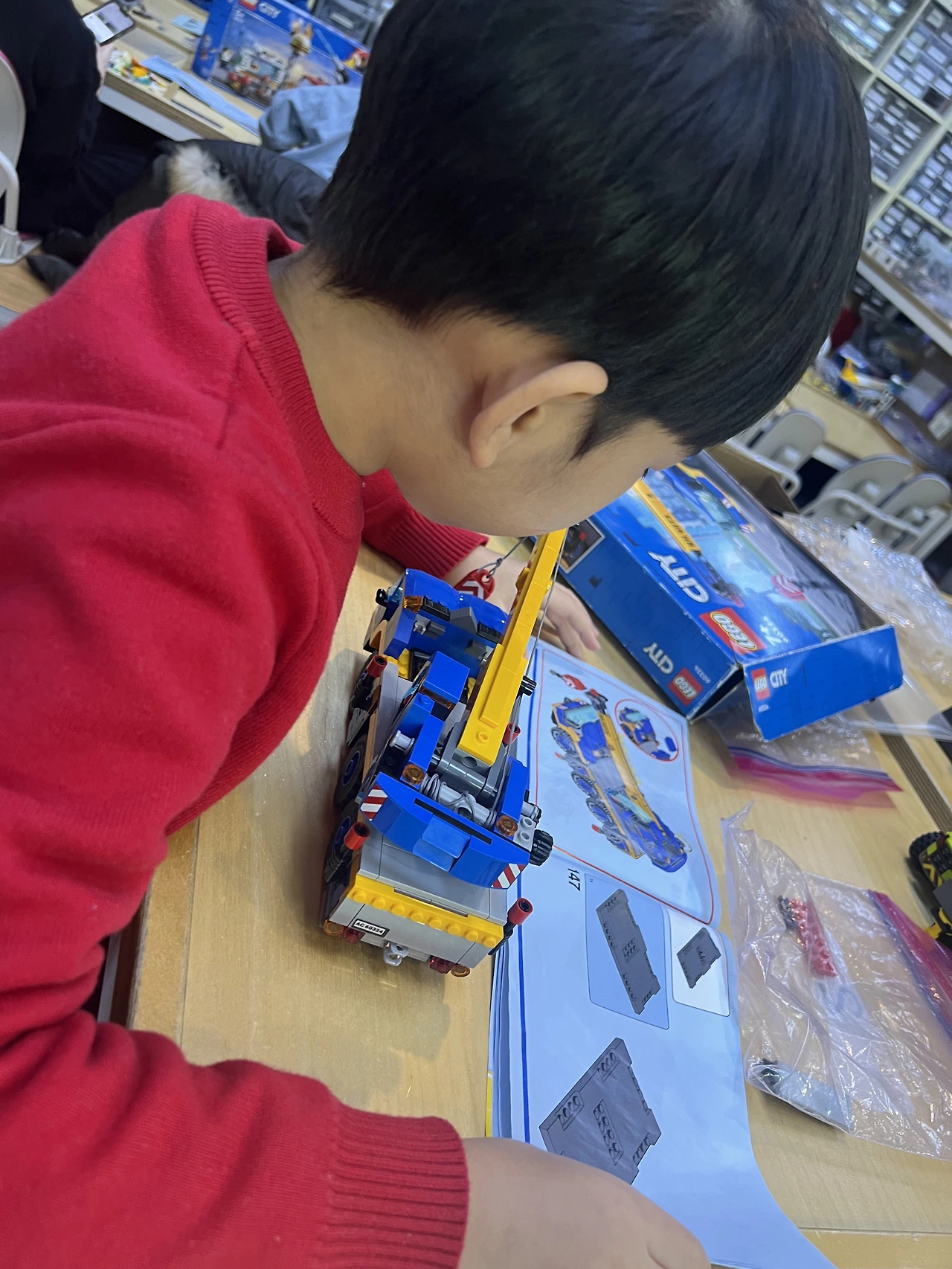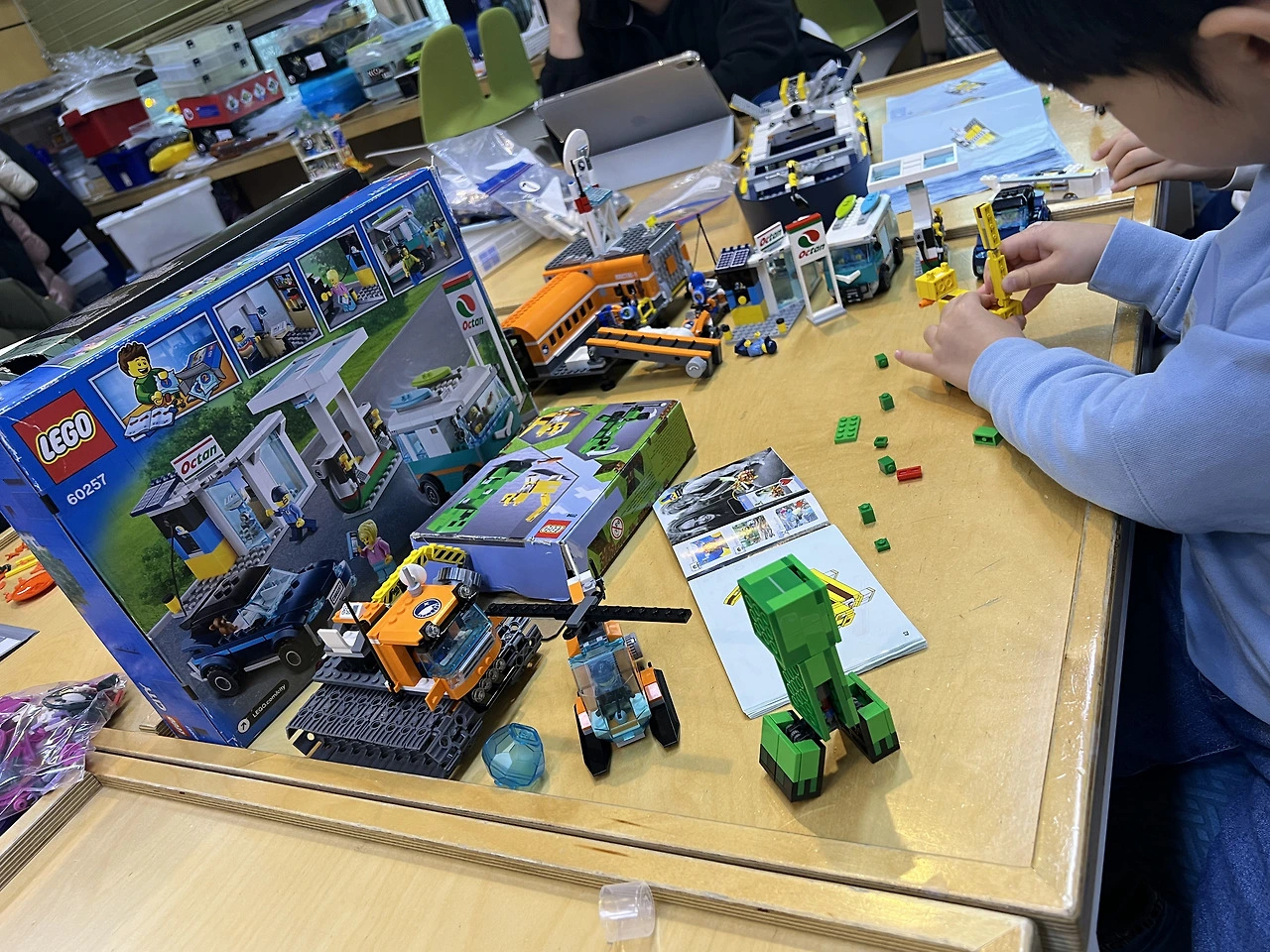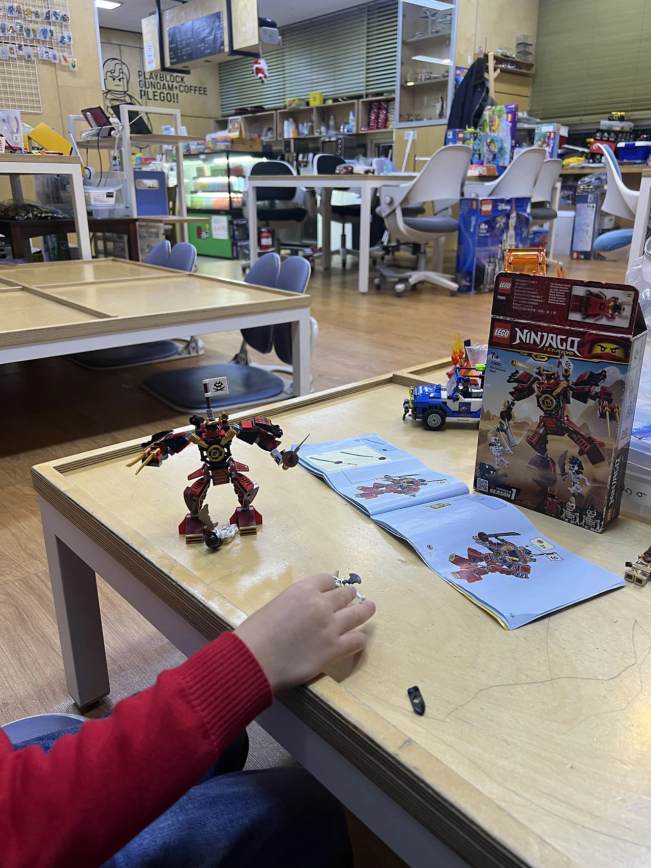 백화점 레고 가게에서 20만 원짜리 사겠다고 한 그날, 이건 아니다 싶어 레고를 조립하는 놀이방을 찾아보았고 마침 비교적 가까운 흑석동에 “플레고”라는 곳을 찾았다. 가 보니 아이가 사겠다고 했던 그 큰 함선 레고를 포함해서 백화점 레고 가게에 수도 없이 가서 기억하는 것들 거의 다 있을 뿐 아니라 종류도 족히 두 세배 다양했다. 패드에서 하고 싶은 레고 종류를 고르면 사장님이 찾아서 아이가 할 수 있는 자리를 찾아 놓아 주셨다. 처음 방문 한 날 아이 눈이 흥분으로 반짝반짝해졌다. 첫날 4시간 넘게 놀았고 중간 크기의 레고를 세 박스 정도 만들었다. (사려면 족히 15-20만 원쯤 될 법) 그 이후크리스마스, 방학, 주말에 부지런히 다녀서 하루에 4-6시간씩, 약 한 달 만에 거의 50 만원을 썼다. 돈이 크다면 크지만 아이의 덕질을 만족시키며 집중할 수 있는 나름 유익한 놀거리이기에 만족도가 컸다. 그동안 조립한 레고를 만약 구매 한다면 그 비용은 그 세배 이상 되었을 것이다. 원래는 ‘시티’ 시리즈만 했었는데, 구매하는 것이 아니니까 ‘닌자’, ‘마인크래프트’ 같은 다른 시리즈도 호기심에 가볍게 시도를 할 수 있었다. 배가 오프면 과자나 음료수, 짜장라면(한강라면기계)도 사 먹었다.