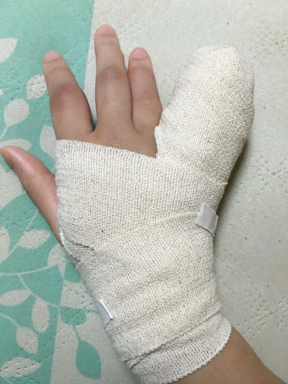 순식간에 어마무시한 말들이 오고 갔다. 그리고 의사 선생님께서는 상태가 제일 심각한 내 새끼손가락을 네 번째 손가락과 함께 묶어 붕대를 감아주셨다. 새끼손가락이 많이 약해져 있는 상태이기 때문에 네 번째 손가락이 지지를 해주어야 한다고 했다. 또 일반 진통제로는 통증이 잡히지 않기에 의사 선생님은 마약성 진통제도 처방해 주셨다. 매일밤 고통에 몸부림치고 이렇게 아플 바엔 진짜 죽는 게 낫겠다 싶었던 무시무시한 통증은 마약성진통제로도 잡히지 않을 정도로 나를 괴롭히다가 점차 조금씩 잠잠해졌다.