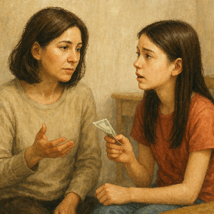 "OO야. 이번에 용돈 올려주면서 ‘추가 요청은 하지 않기’로 약속했잖아. 기억나지?"