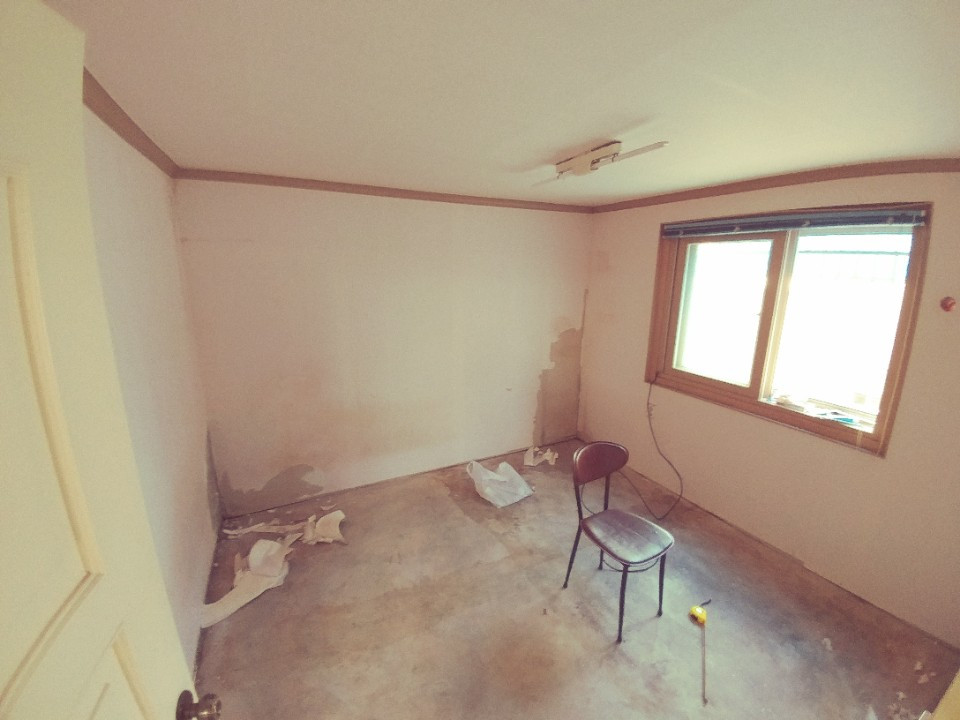 사실 가구가 있을 때는 몰랐던 곰팡이 친구들 때문에 당황했어요... 도배지 위에 그냥 페인트칠을 하려고 생각했는데 곰팡이가 핀 벽지를 뜯어내다 보니 방하나의 벽지를 다 뜯었습니다.
