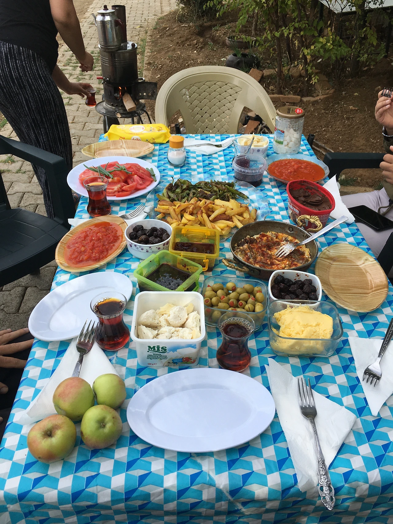 그날 이후, 우리는 하자르 공원을 떠날 때까지 매일 아침과 저녁을 그들과 함께했다. 메네멤(달걀, 토마토, 야채를 한데 어울려 볶은 터키의 대표 음식), 화이트 치즈, 올리브 장아찌, 감자튀김 등 카발티(kahvaltı)라 불리는 터키인들의 아침 메뉴가 식탁을 가득 채웠고 매번 웃음꽃이 피어났다. 외할아버지는 변함없이 잔가지를 태우며 묵묵히 차를 끓였다. 차를 맛있게 끓이는 비결이 뭐냐고 묻자 그는 짧고 간결하게 "정성"이라고 대답했다. 한 번은 고기를 굽기도 했다. 그가 구워준 정성 가득한 고기는 차만큼이나 맛이 좋았다.