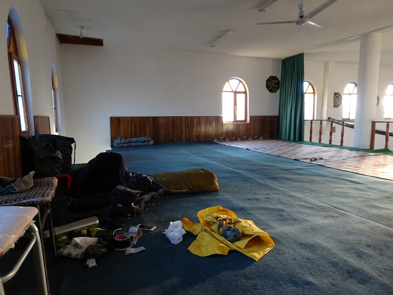물론 아무 모스크나 가서 하룻밤을 청할 수는 없다. 되도록 인적이 드문 작은 마을의 모스크가 좋다. 카스타모누 도심을 벗어나고 얼마 지나지 않아 나는 적당한 모스크를 발견했다. 대문이 열려 있어 안으로 들어가 보지만 사람은 보이지 않고 일 층 현관문은 잠겨 있었다. 낭패감을 느끼며 주변을 둘러보니 다행히 건물의 측면에 이 층으로 올라가는 문이 열려 있었고 나는 조심스레 안으로 들어갔다.
