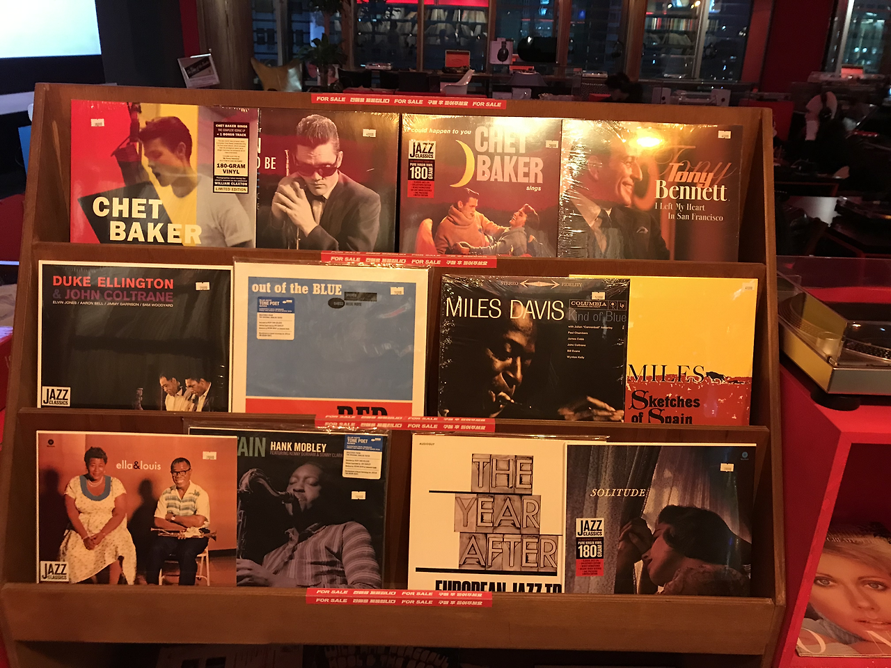 들어가보니 사람들이 푹신한 소파에 앉아 두런 두런 이야기하며 헤드셋으로 음악을 듣고 있었다. 카페 안은 사람들의 이야기 소리보다 가게에서 흘러나오는 음악 소리로 꽉 채워져있었다. 사진 오른쪽에 보면 창가자리가 5-6개 정도 있다. 자리가 생각보다 많아서 좋았다. 특히 창가에 혼자 앉을 수 있는 자리가 있어서 부담없이 오랜 시간 음악을 듣다 갈 수 있다.