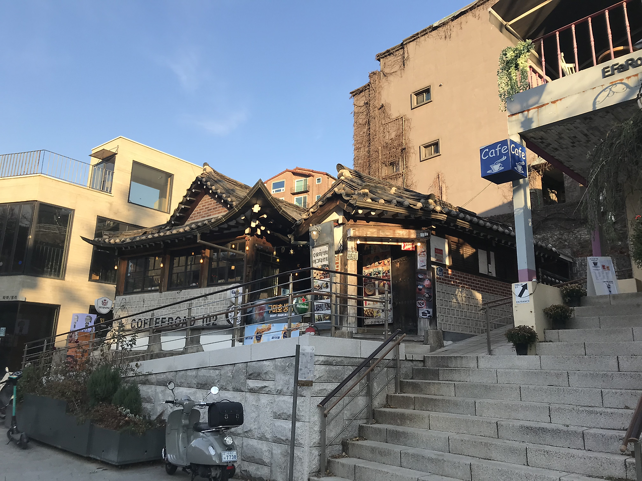 삼청동에 카페거리가 있는데 구글지도에는 1자로 나오지만 사실 곁길로 들어가면 더 많은 카페를 볼 수 있다.