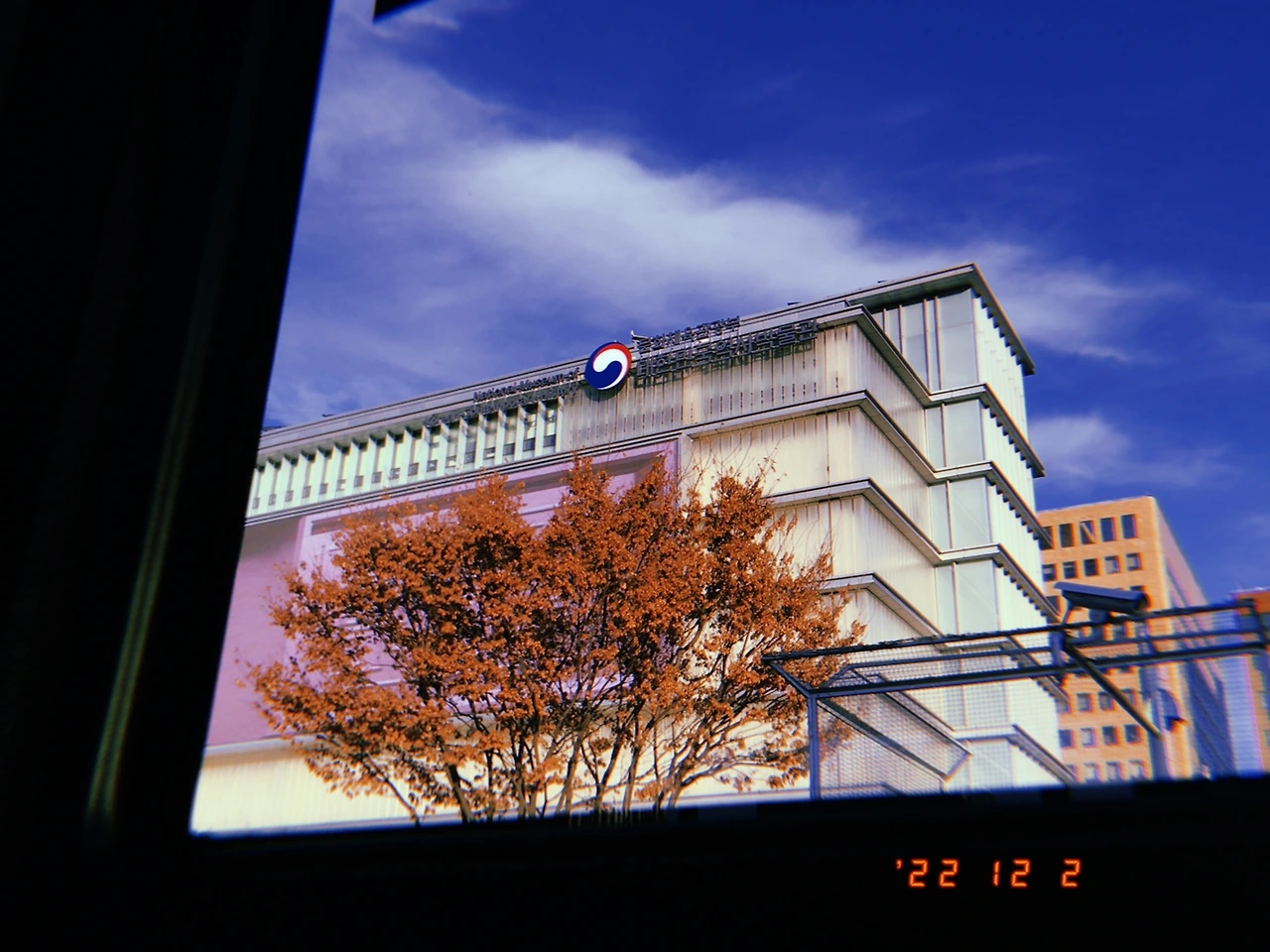 버스 차창 밖으로 보이는 대한민국 역사 박물관.