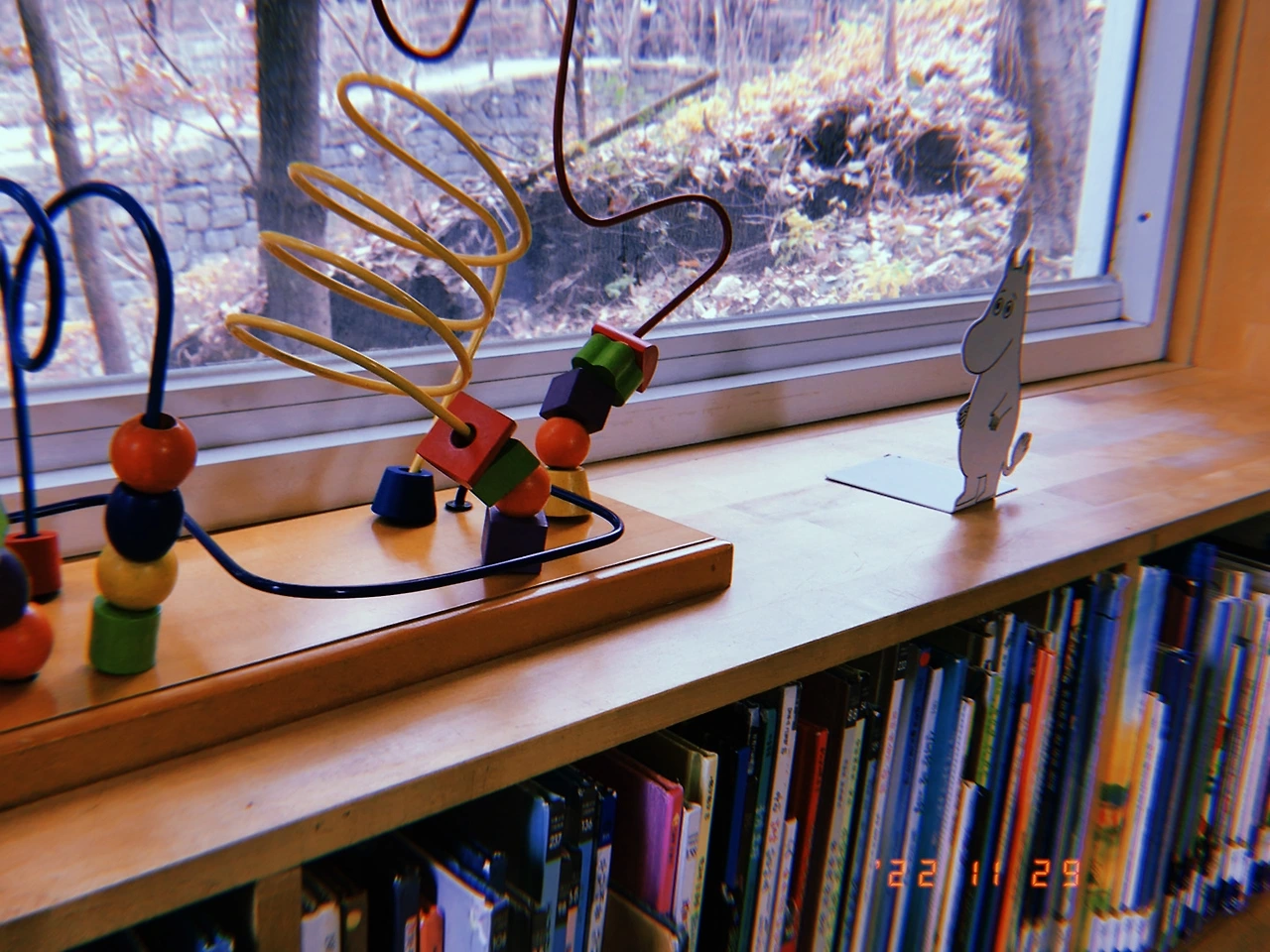 공원 안에 있는 작은 도서관. 컨테이너 박스로 지은 듯한데 아담하고 따뜻했다. 사서분과 나 둘만 있어서 어색해서 구석으로 가서 조용히 읽다 왔다. 내부에서 바깥을 보면 이런 모습.