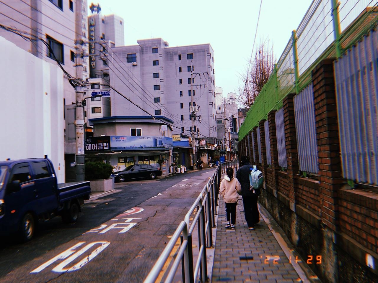 사실 초등학교 3학년이 되기 전까지 쭉 서울에서 살았었다. 부모님이 서점을 운영하셨고 같은 건물 2층에 유치원이 있었다. 맞은편 골목은 나의 작은 세계이고 놀이터였는데 학교에서 몰래 가져온 분필로 벽돌로 된 담에 그림을 그리기도 하고 겨울이 되면 바닥이 꽁꽁 얼어서 신발로 미끄러지듯이 스케이트를 타기도 했다. 추억의 장소.