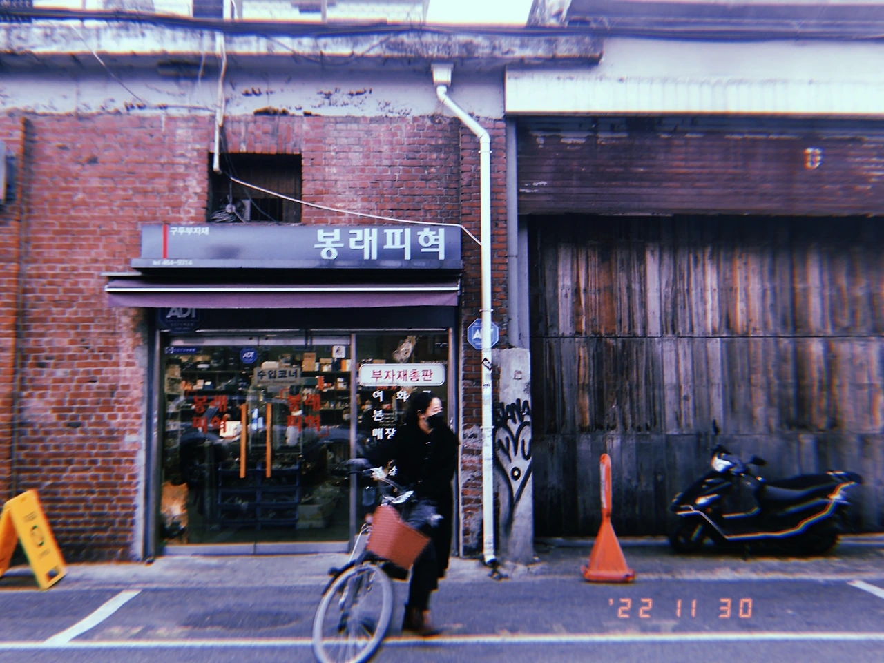 성수동은 가죽을 파는 가게들로도 유명하다고 한다. 봉래피혁도 그 중 하나인데 젊은 여성분이 그 앞에 자전거를 세워놓고 뭔가를 주섬주섬 꺼내더니 자전거를 몰고 금세 지나갔다.