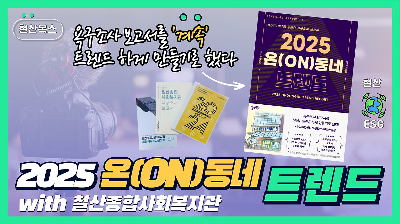 바로 ‘광명 온(ON)동네 복지관’ 사업이다. 결과는 광명시가 행정안전부 주관 2024년 읍면동 복지, 안전서비스 개선 우수사례 경진대회에서 우수상을 수상하였고, 광명시 10대 뉴스에도 포함되었다. 2024년 광명의 지역복지에서 ‘온(ON)동네 복지관’을 빼고서는 설명할 수 없다. 그 이름을 철산의 트렌드 보고서에도 이어 2025년의 더욱 우리 지역만의 개성과 발전된 의미를 담고자 한다.