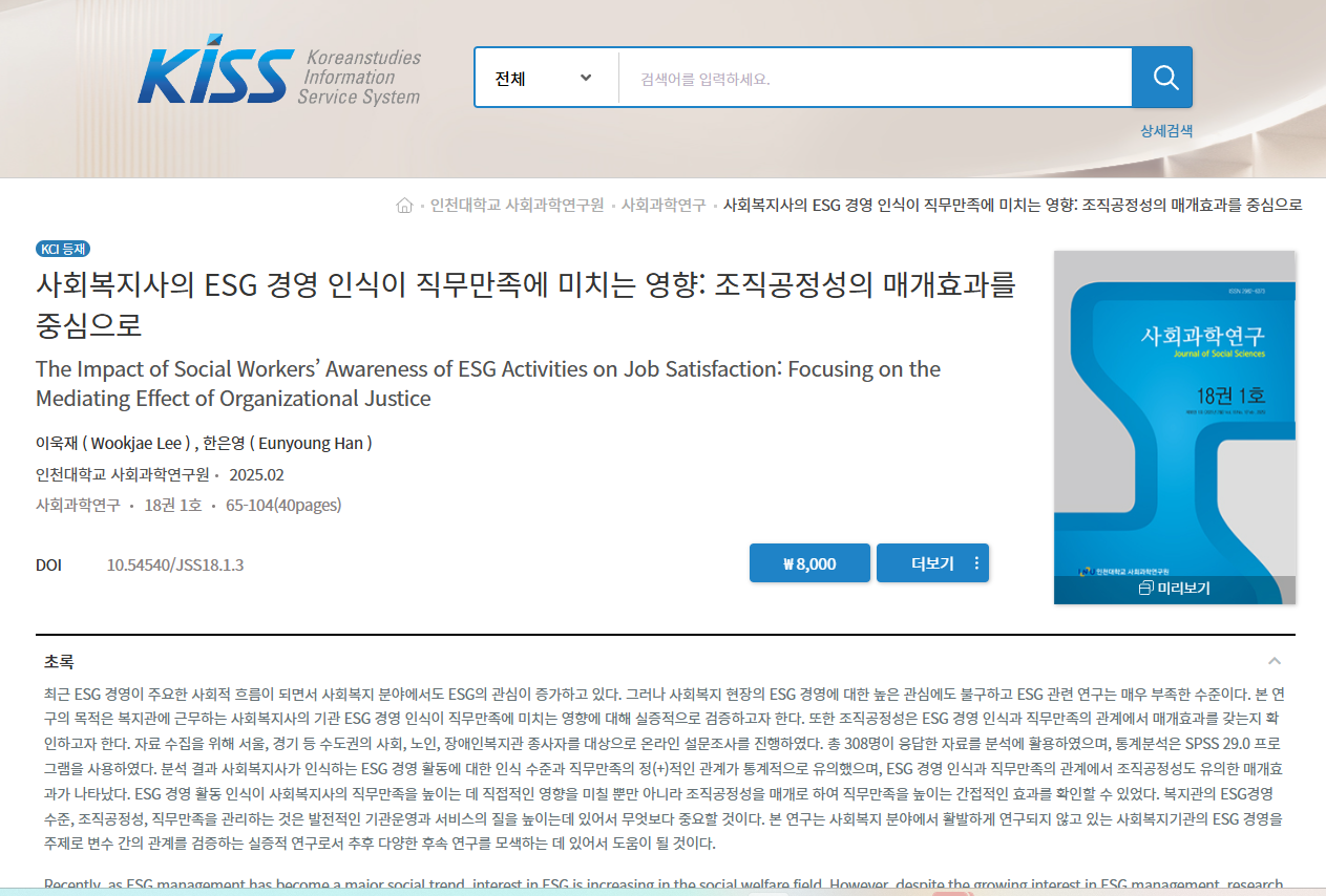 저의 ‘복지 ESG 경영’에 대한 두 번째 학술 논문이 게재되었습니다.