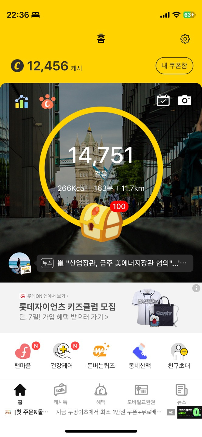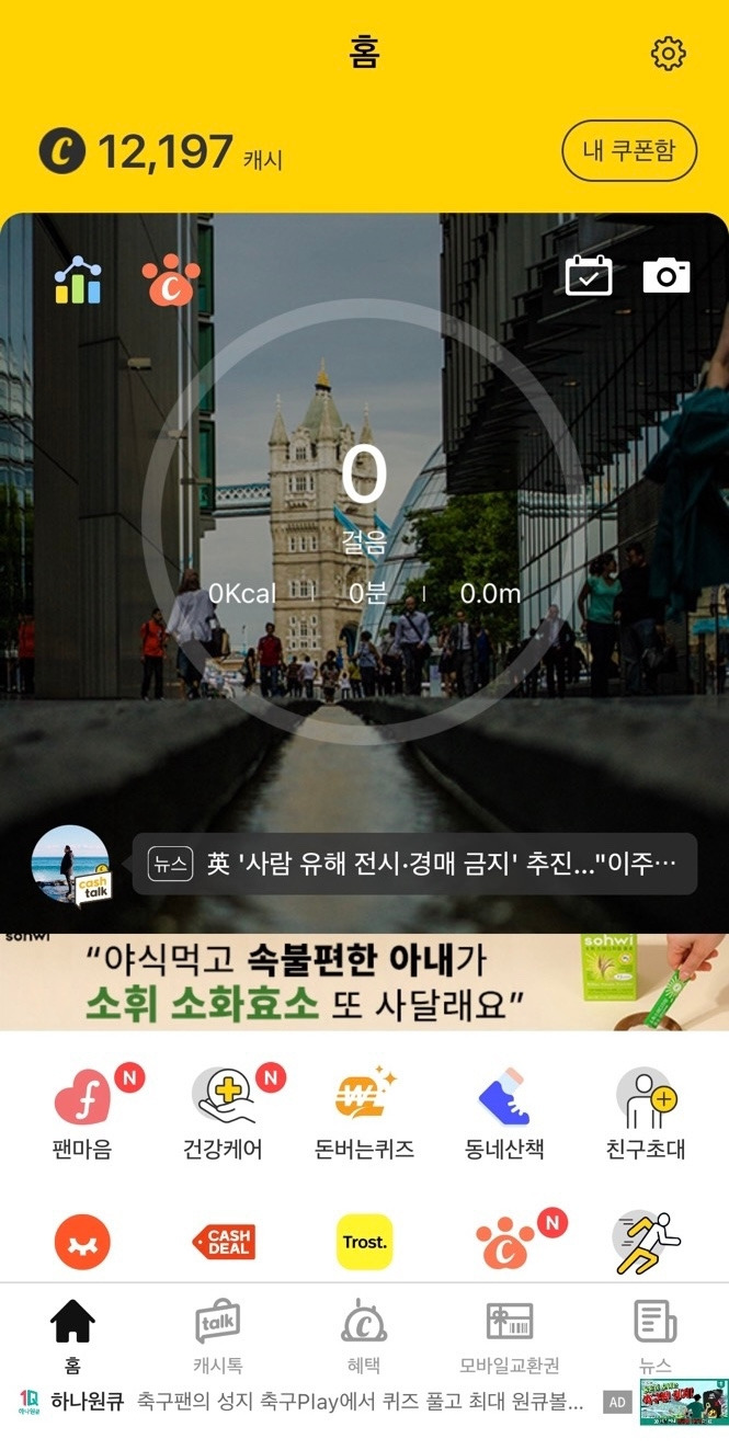 예전에 러닝크루를 함께 하는 형님이 무언가를 막 열심히 하는 모습을 보았다. 그래서 여쭤보니 만보기 숫자를 막 누르고 계시더라... 요즘 유행하는 앱테크 중 하나인 캐시워크였다. 앱테크는 일정 챌린지나 미션을 수행하면 리워드를 제공하는 것으로 이를 캐시나 포인트로 환급해 주는 경우가 많다. 형님이 하던 것은 만보기 기반으로서 대부분 8천보에서 1만보를 걸으면 보상을 지급한다. 최근에는 토스, 카카오뱅크 등 금융 앱들이 상당히 여러 가지 앱테크 미션을 제공하고, 공공에서 운영하는 손목닥터 9988도 매우 유용하다.