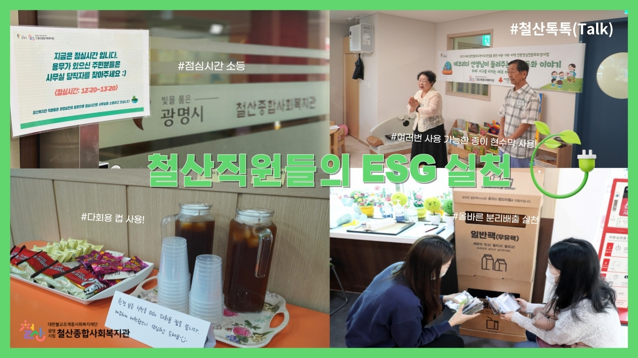심지어 지역의 주민들과 함께하는 복지도 이러한 흐름이 동참하고 있다. 코로나19로 대면 실천이 어려워진 사회복지 현장에서는 2022년부터 ESG 경영에 대한 선포식을 통해 친환경 실천을 강조하고 있다. 최근 복지 현장에서 주민들의 참여율과 만족도가 높은 사업의 하나로 '기후위기 대응' '친환경' 관련 프로그램을 들 수 있다(이욱재 외 2024). 단순한 기본 실천에 있어서도 전기절약, 사무환경 및 행사 등에 있어서 일회용품 사용 자제를 통해 최근의 사회적인 분위기에 동참하고 있다.