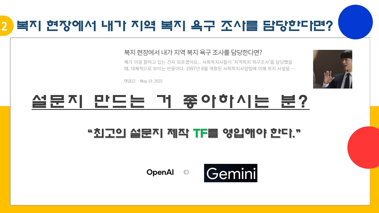 AI로 복지 욕구조사를 설계하고 설문지를 제작할 수 있다.