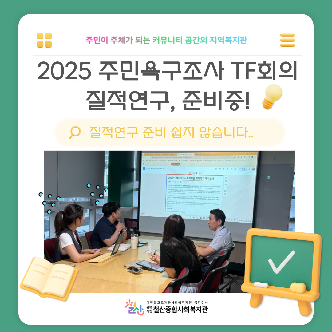 우선 질적 연구할 주제는 자유롭게 설정이 가능하다. 나의 경우 우리 복지관이 지역과 함께 하면서 이룬 성과를 물어보는 질문지를 만들어 보고 싶었다. '지역밀착형 사업 광명 온(On) 동네 복지관'이 그것이다. 뭔가 복잡하고 세부적인 내용을 연구하면 좋을 것으로 보인다. 어느 정도 그 내용에 대한 지식이 있다면 더 좋다.