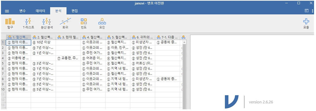 그런데 아쉽게도 여기까지이다... 혹시 여기서 기술통계부터 평균분석을 한다면 SPSS를 쓰듯이 자모비를 쓰는 방식을 별도로 익혀야 한다. 그 방법은 기존에 시중에 나온 자모비 책을 보고 익히기 바란다. (책을 쓰신 분들의 노고를 위해...) 하지만 더 배울 여력이 되지 않는다면, 우선 이 정도 기술로도 충분히 요긴하게 쓸 수 있을 것으로 기대한다.