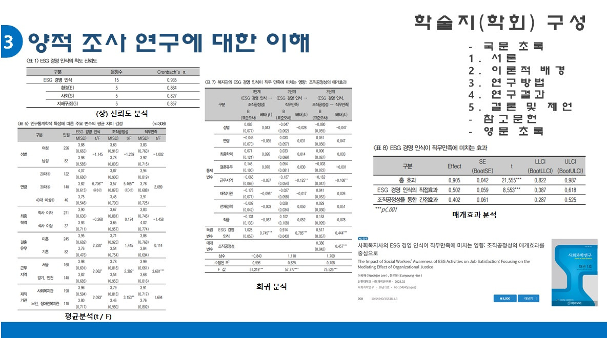 바로 전문적인 용어는 최대한 적고, '적절하게'의 수준만 쓰는 거다. 양적 연구는 어려운 통계표와 통계적 검증을 최소한으로 가져감이 필요하다. 불가피하게 많이 써야 한다면 충실히 설명해줘야 한다. 물론 이 수준을 맞추기는 매우 어렵다. 그래도 '적절함'에 대한 인식을 하는 거와 하지 않는 거는 분명한 차이가 있을 거라 생각한다. 특히 되도록 복잡한 통계표는 인포그래픽이나 도표로 변환은 필수적인 요소이다.