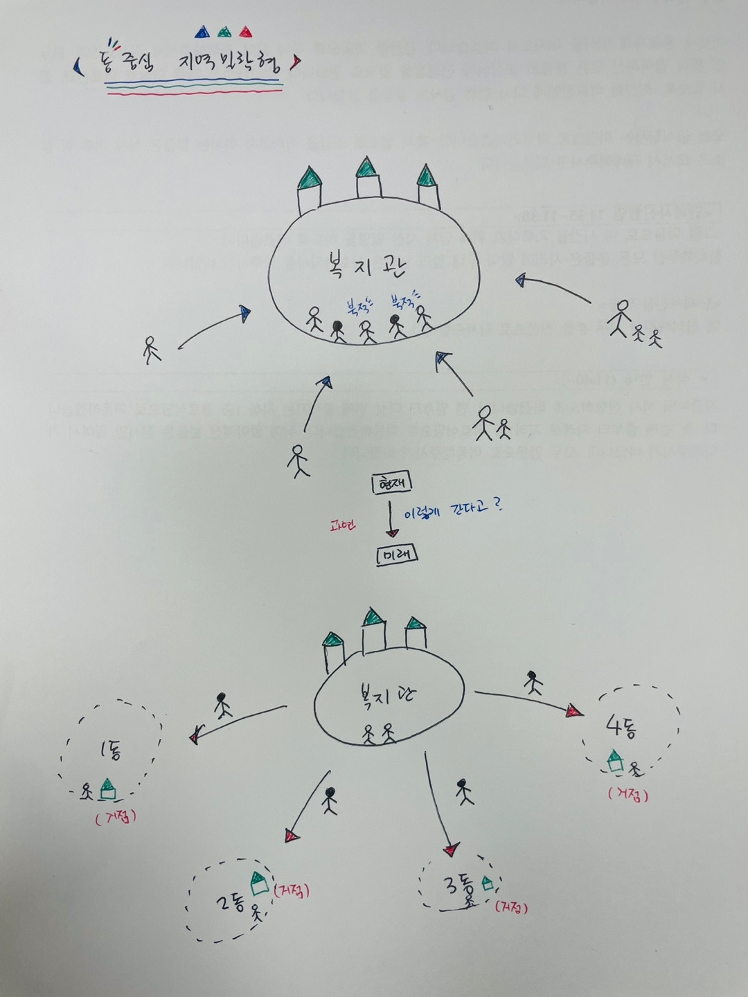 요즘 복지현장에서 '동중심 지역밀착형'이 부각되고 있다. 정확히는 종합사회복지관들이 정체성 위기를 극복하기 위해 중점적으로 하고 있다. 뭐 나도 좋은 방향이라고 인정하고 있으나, 문득 이런 생각이 든다.
