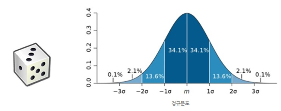 정규분포의 법칙을 아는가? 나도 수포자였는데, 너무 자세히 이야기하면 짜증 나기 때문에 간단히 말하면 숫자가 큰 세상의 모든 일은 정규분포로 형성된다(평균 키, 몸무게, 선호도 등). 만약 주사위의 경우에도 100번 이상, 아니 300번 이상 던지면 6번 중 1번 나올 확률이 68.2%까지 99.2%까지(하단 이미지 참조) 100%에 가까워지게 된다. 결론적으로 많이 시도하면 어떠한 분야에도 적용되는, 심지어 ‘우주의 법칙’이라고까지 할 수 있는 ‘정규분포’에 근접하는 것이다. 이 정규분포는 다수를 확인하는 양적 연구(통계)가 당연히 맞을 수밖에 없다는 것의 증거이다.