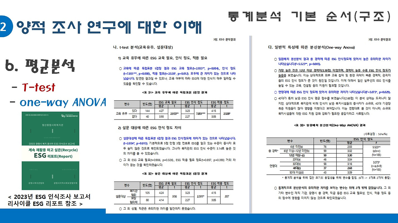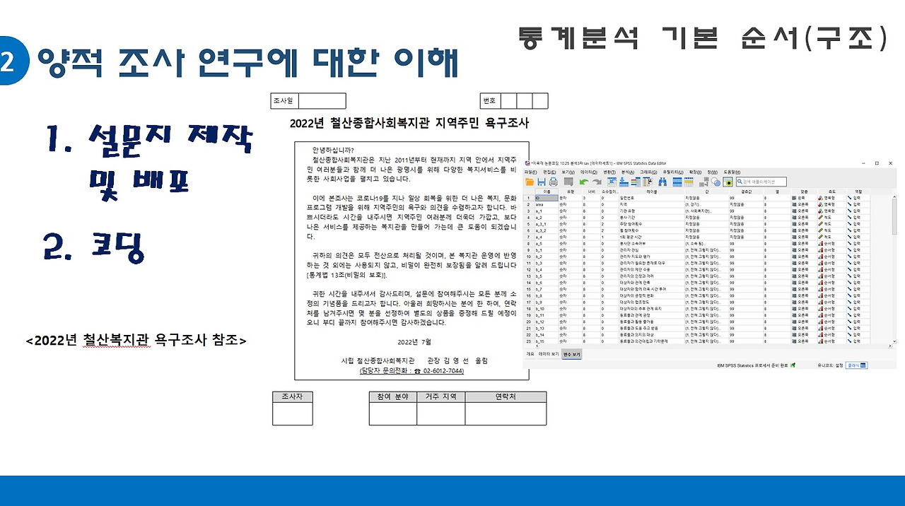 설명이 너무 길어졌지만, 이 통계의 구조와 순서를 알면 어느 분야에도 사용이 가능하다. 영어를 하면 어느 나라에 가서도 말이 통하지 않나? 같은 원리다. 우리의 역할과 전문성을 인정받게 되는 것이다. 아쉽게도 현장의 실무자들은 이 양적 분석을 너무 싫어하는 거 같다. 이런 거를 쓰면 사회복지마인드가 떨어진다고 생각하는 듯도 싶고... 사람을 이렇게 수치화해서 평가하는 것은 안된다고까지 생각하는 것 같다. 유독 공부하려고 하지 않는다고 느낄 정도다. 안타깝다.