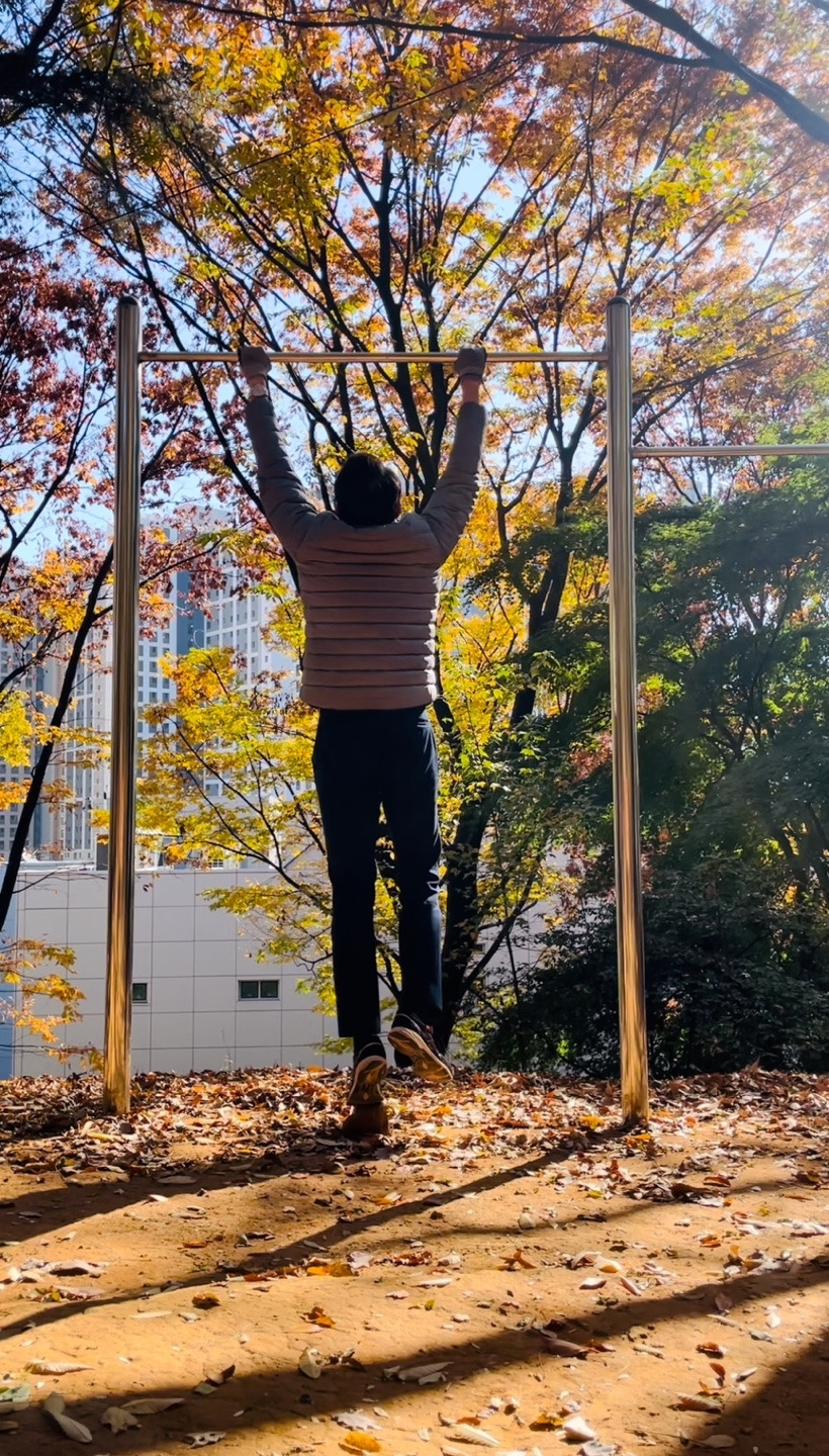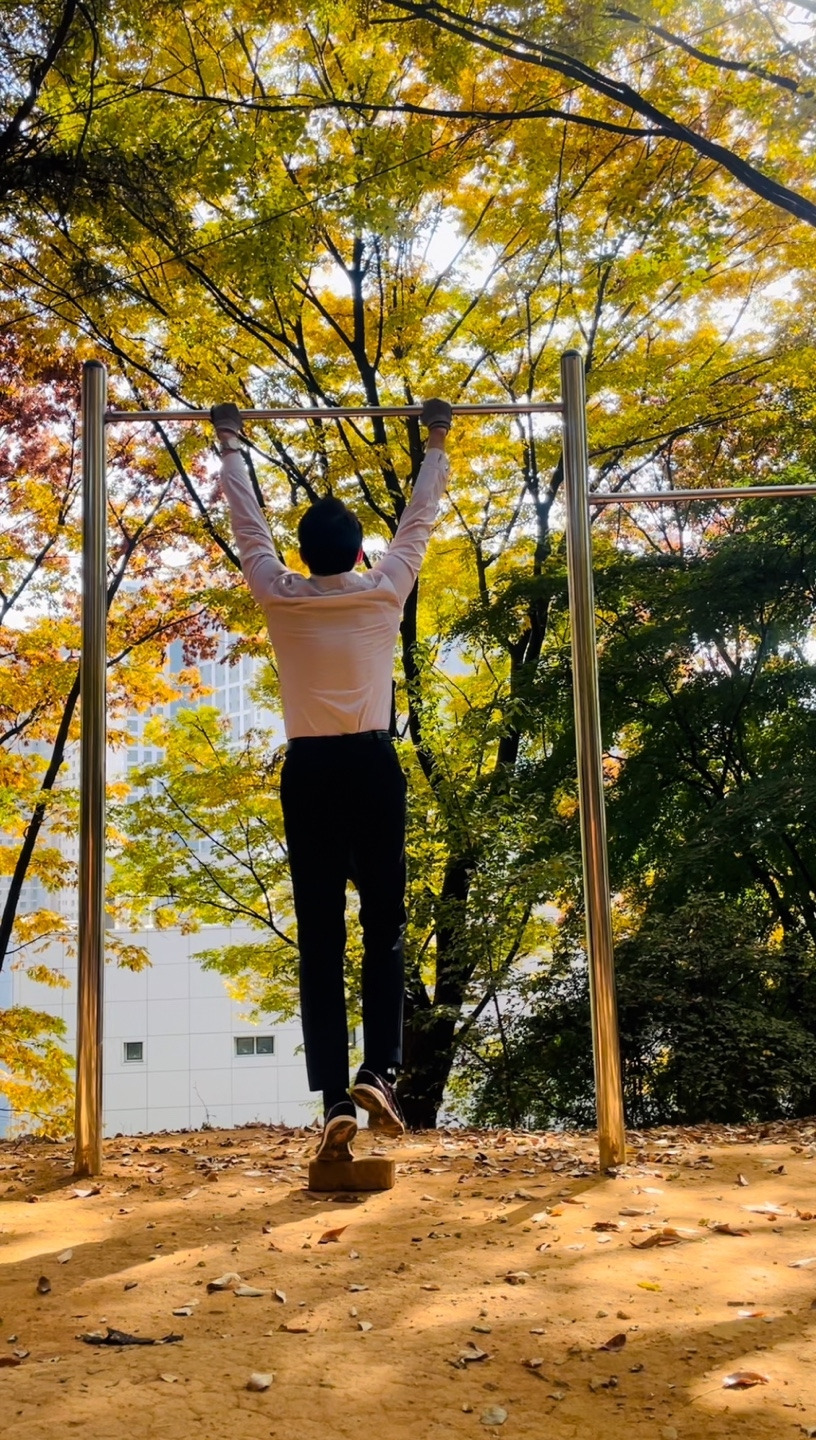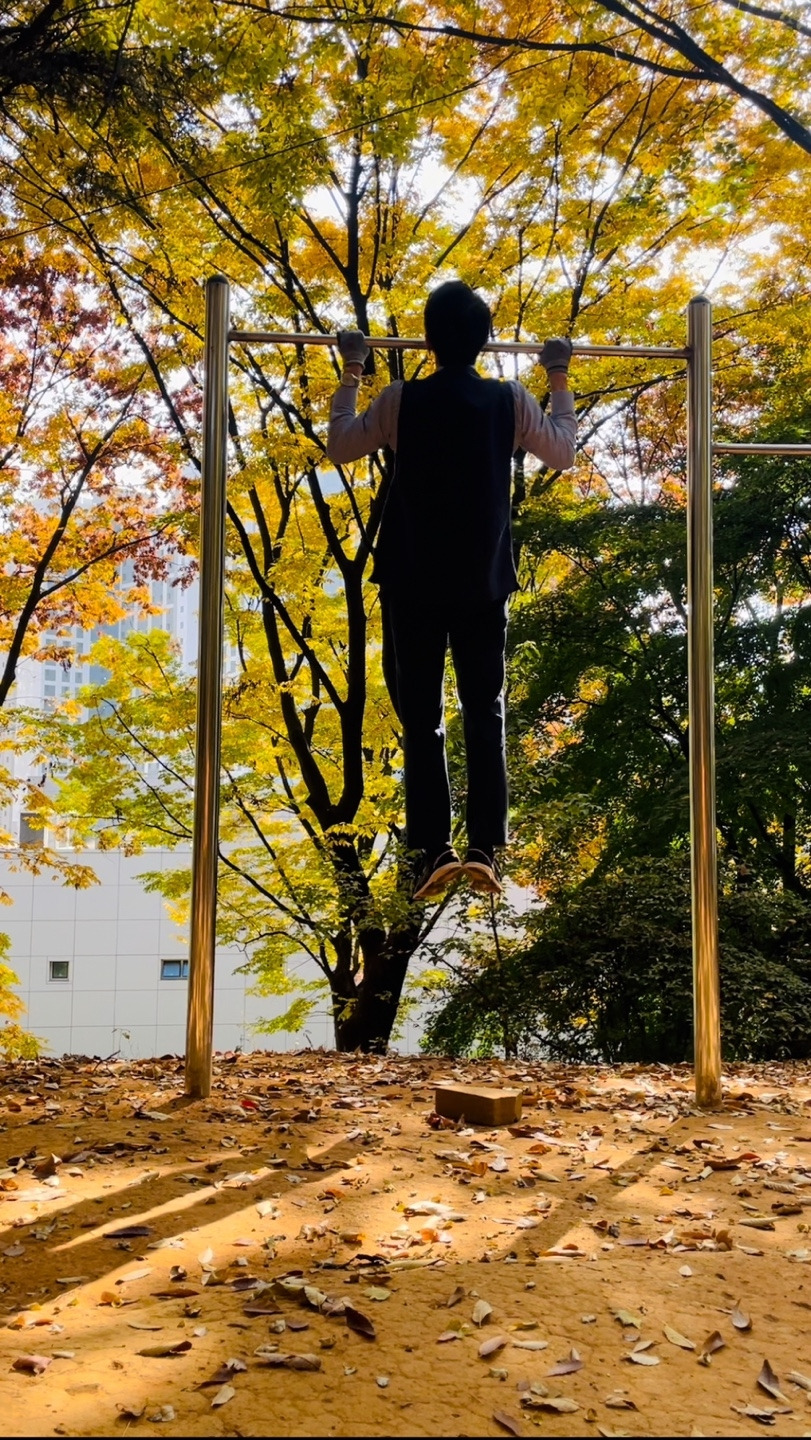 유난히 아름다운 올해의 가을에 끝자락에 매달리고 싶었서, 그래서 철봉을 잡았다. 가을의 추(秋)와 철봉의 철(鐵)은 솔직히 '치읏' 말고 아무 연관성은 없지만, 매달리다 보면 이 지금의 내 마음을 계속 잡을 수 있지 않을까 싶어서...