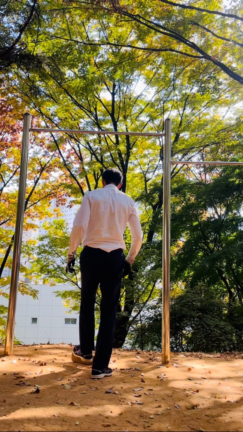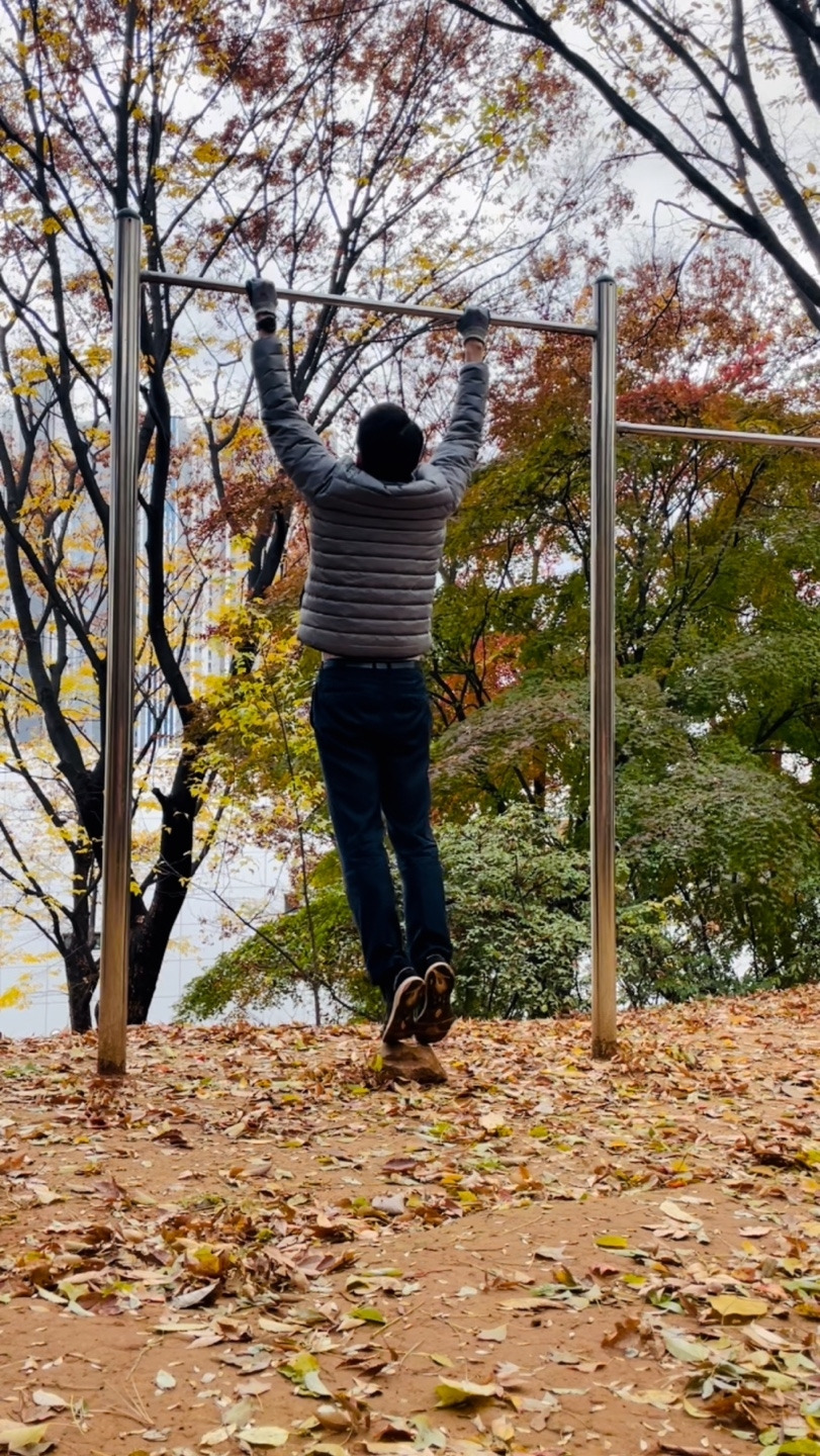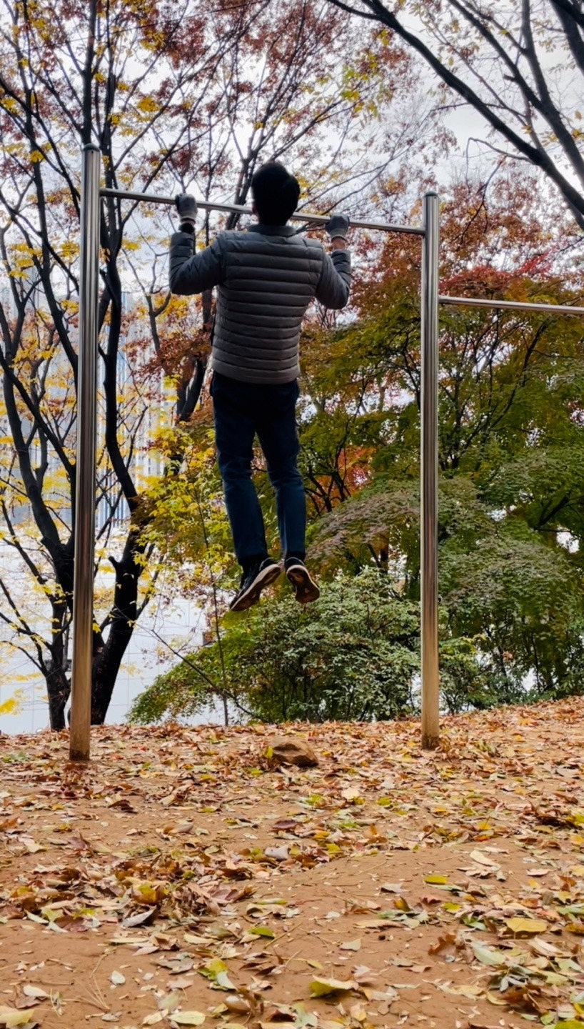 유난히 아름다운 올해의 가을에 끝자락에 매달리고 싶었서, 그래서 철봉을 잡았다. 가을의 추(秋)와 철봉의 철(鐵)은 솔직히 '치읏' 말고 아무 연관성은 없지만, 매달리다 보면 이 지금의 내 마음을 계속 잡을 수 있지 않을까 싶어서...