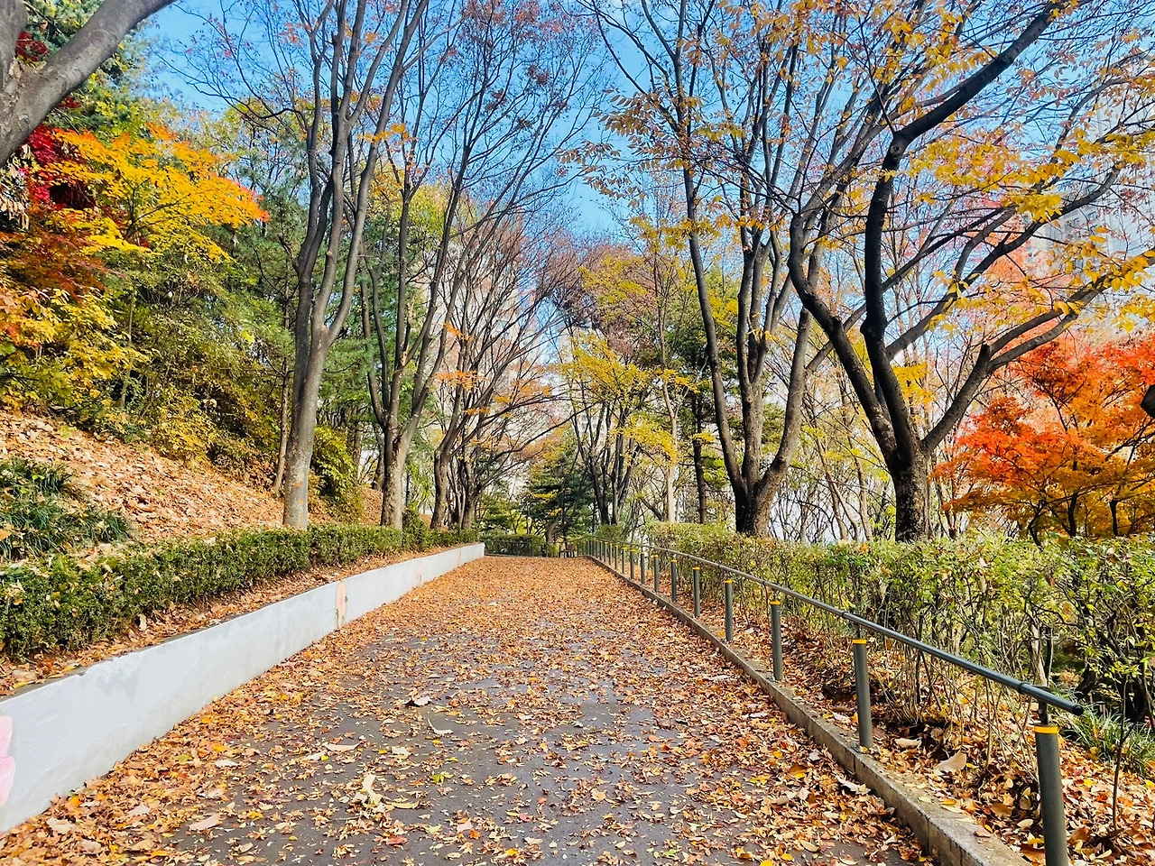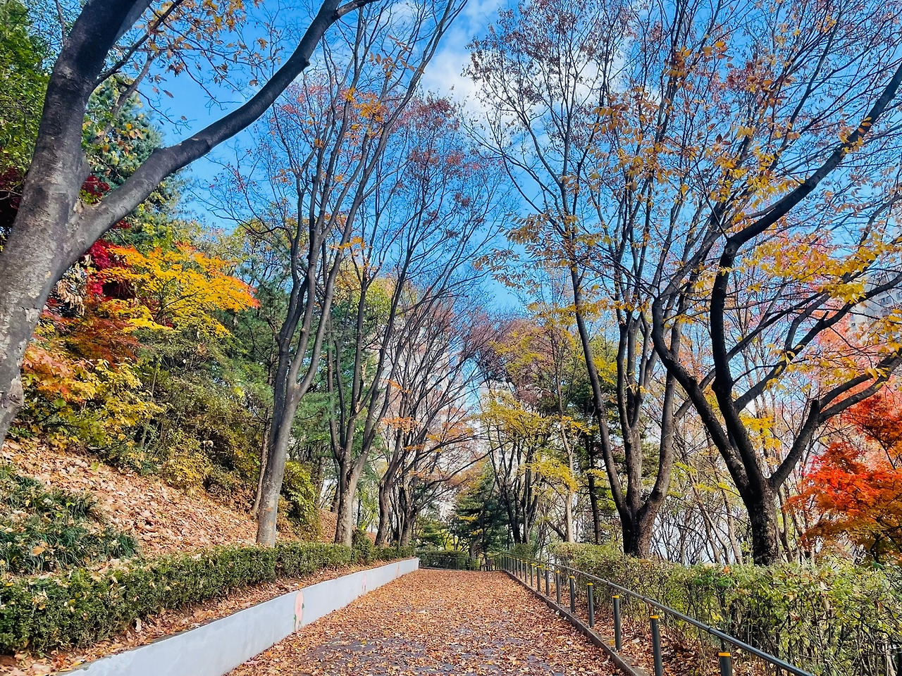 그런데 하필 오늘은 유독 달랐다. 비가 잠깐 개인 공원은 나에게 잊지 못할 광경을 선사했다. 갑자기 차가워진 공기를 잊어버리게 만드는 푸른 하늘과 총 천연색의 나무 빛깔이 나를 이끌었다.