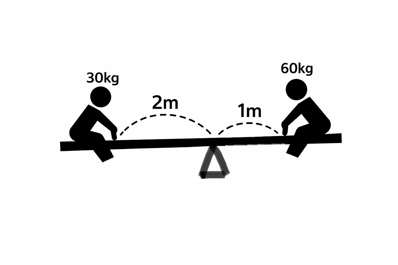 힘과 거리를 곱한 모멘트 값이 양쪽이 같아져 시소가 균형을 잡게됩니다.