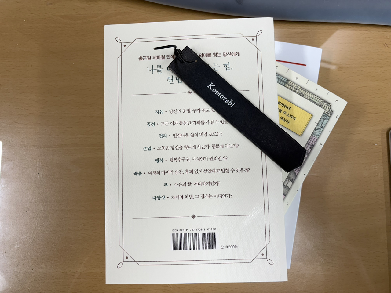 일본어에서는 ‘코모레비 (木漏れ日, こもれび) ‘ 라는 단어를 좋아합니다. 작년에 일본어 선생님이 자신이 좋아하는 단어라고 알려주고 선물로 그 글이 써진 가죽 책갈피를 주었기 때문에 안 좋아할 수가 없습니다.