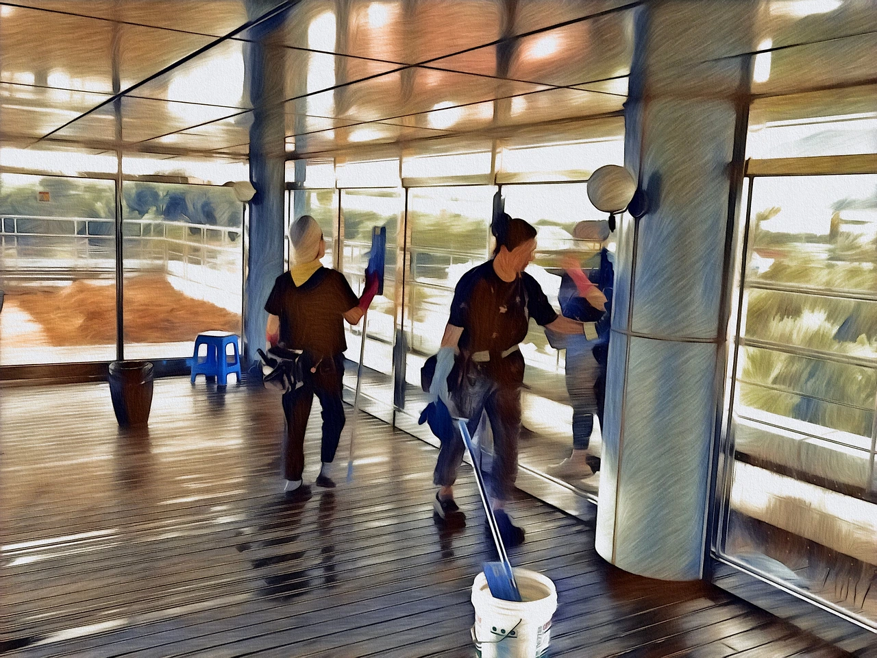 데크 바닥과 유리벽들을 대청소하고, 심플하고 달덩이처럼 둥그런 조명도 새로 달았습니다.