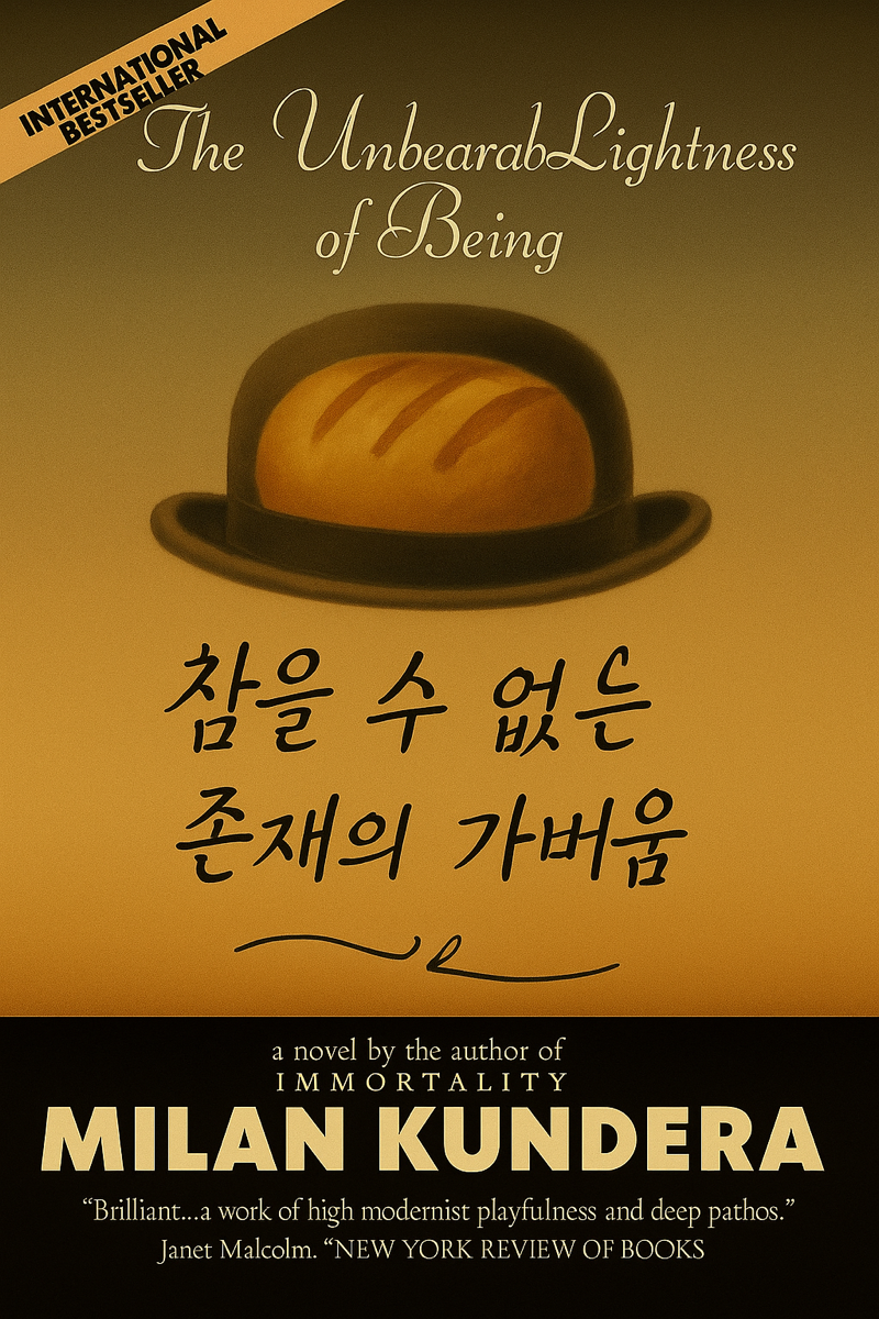 체코에서 프랑스로 망명을 온 ‘밀란 쿤데라’는 이 그림을 알아보고 중절모를 주제로 소설을 쓴 거야. 빵도 자유도 없이 가벼운 존재들과 배부른 자들의 위선을 소설 속에 중절모로 제대로 표현한 거라고.