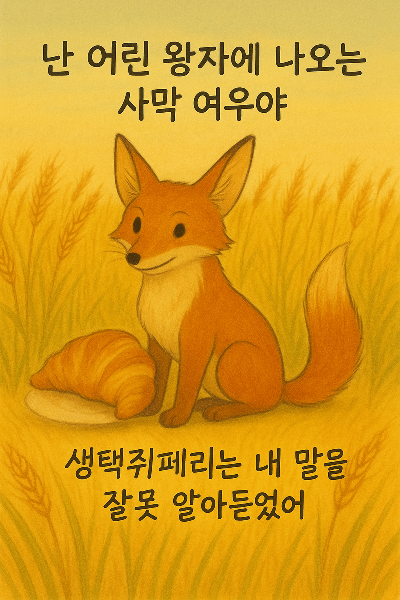프랑스의 비행사이자 작가인 생택쥐베리가 쓴 책 ‘어린왕자’에 나온 사막여우가 할 말이 있다고 등장한다.