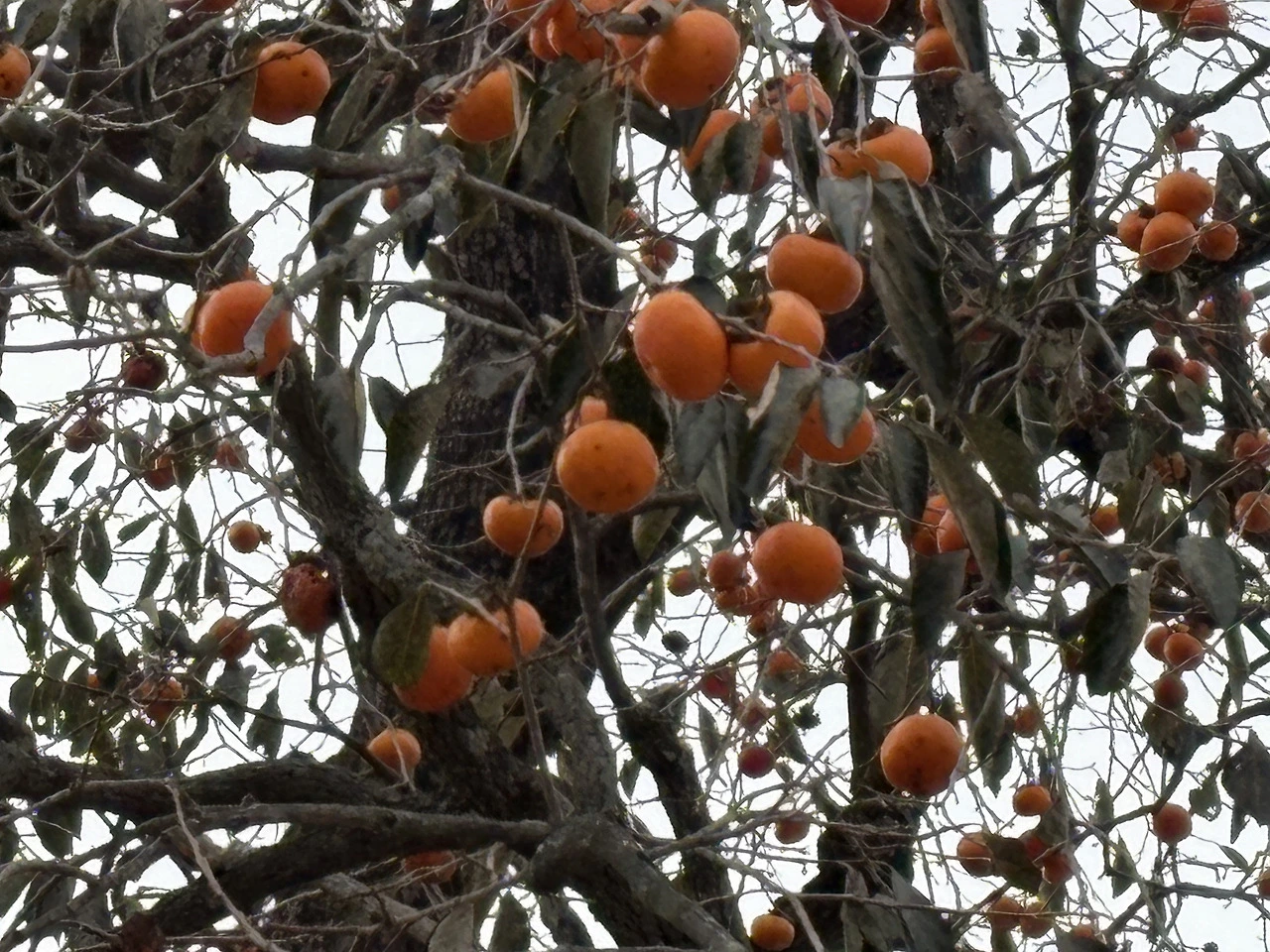 감나무와 주변의 오래된 나무들이 고즈넉한 분위기를 더해줍니다.