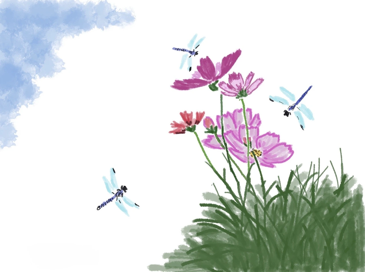 (사진 보고 아이패드에 따라 그려본 코스모스입니다)