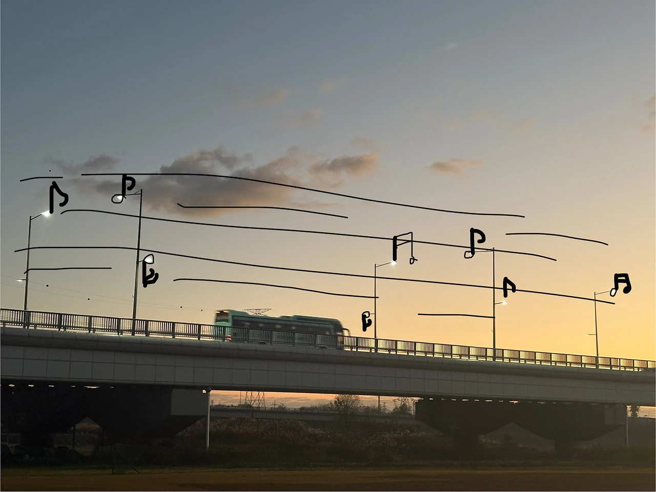 새벽녘 집에 돌아가지 못한 별마냥 반짝거리는 가로등 불빛은 어느 별자리일까 생각해 봅니다. 가로등 별들을 연결해 보니 마치 악보의 음표 같아서 ‘도레미 별자리’ 라 이름을 지어주었습니다.