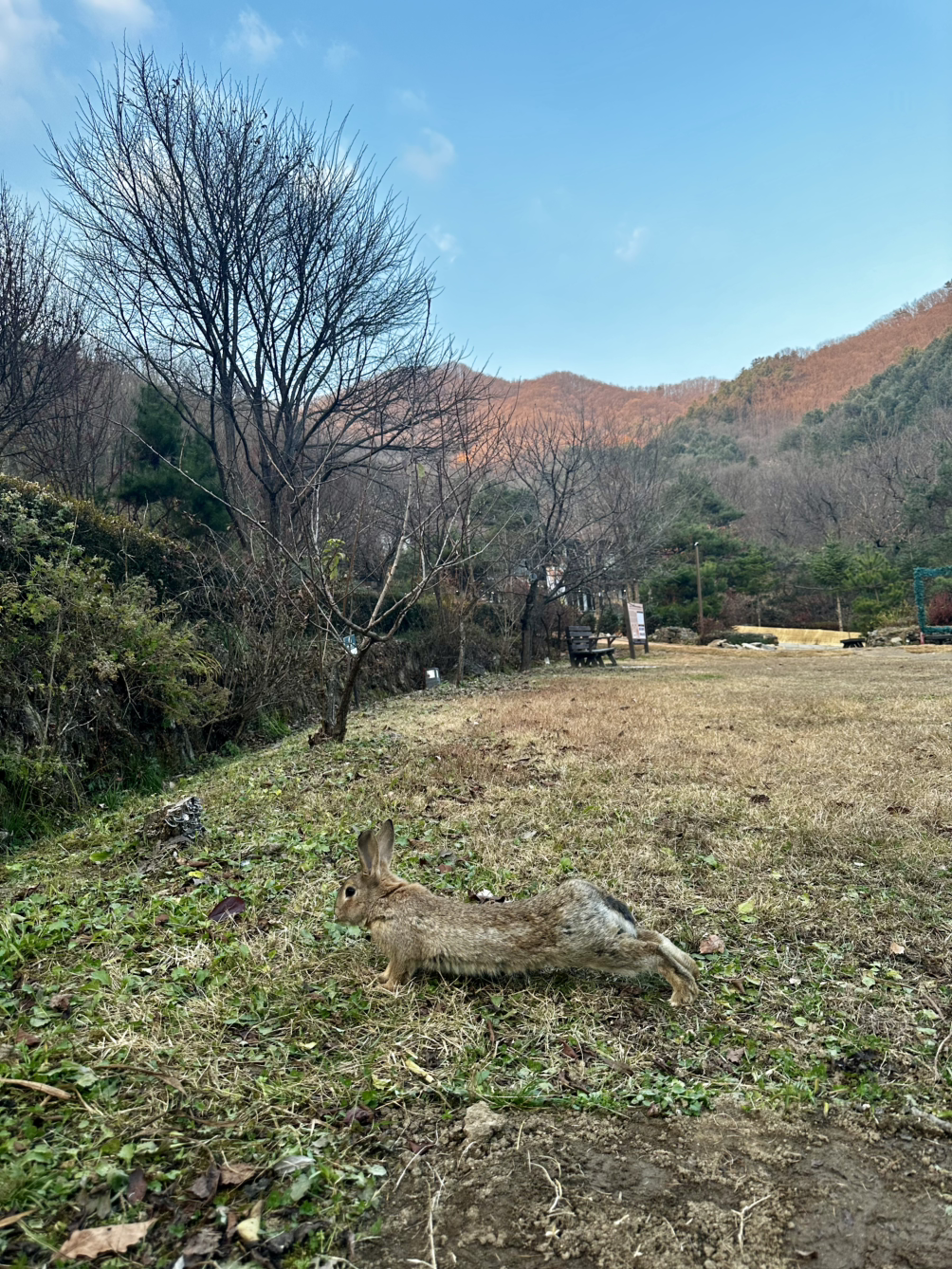 무사히 힐리언스에 도착해 주차를 하자마자 토끼 두 마리가 함께 나무 아래로 달려가는 것이 보였다.