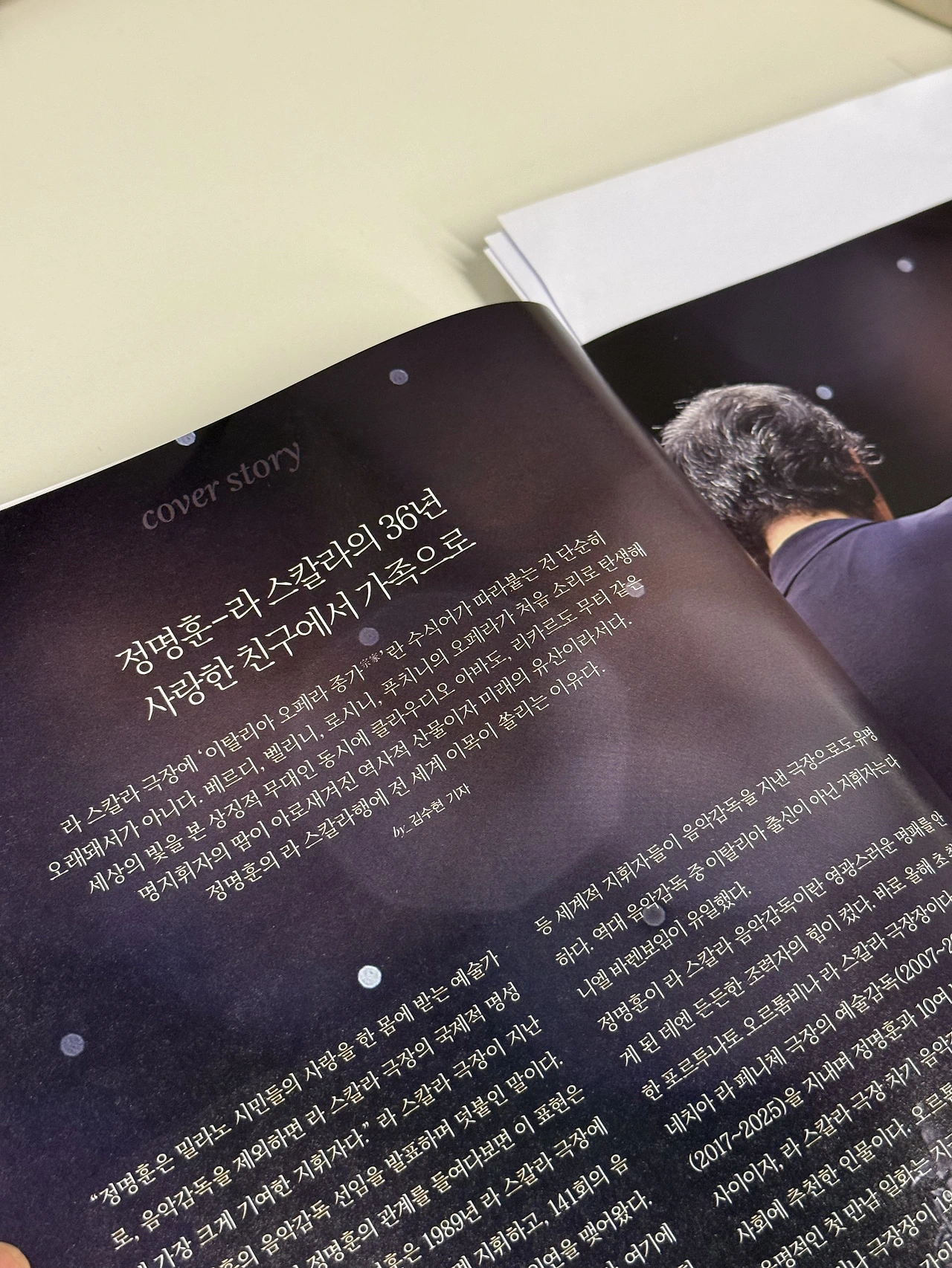 나는 정명훈의 뒷모습에서 장군의 그림자를 보았다. 세월이 그의 어깨에 고요히 내려앉았지만, 그의 영혼만큼은 여전히 생명력이 넘쳤고 단단히 선 기개와 무대를 이끌어가는 위엄은 장군의 형상을 떠올리게 했다. 외국인 연주자들을 이끄는 그의 모습은 당당한 한국인의 얼굴이었고, 그 자리까지 오르기 위해 겪었을 수많은 인고의 세월과 타지에서의 고독이 떠올라 자부심마저 느껴졌다. 그는 군대를 지휘하는 장군처럼 감정에 휘말리지도, 격정에 휩쓸리지도 않았다. 언제나 차분히, 철저히 계산하며 음악의 클라이맥스를 어디에 두어야 할지, 무엇을 향해 달려야 할지 과녁을 분명히 겨냥한 연주였다. 그 마지막까지 흔들림 없는 지휘 속에서, 나는 한 예술가의 생애와 한 민족의 자부심을 함께 보았다. 앞으로 라 스칼라에서의 그의 행보가 더욱 기대되는 시간이였다.