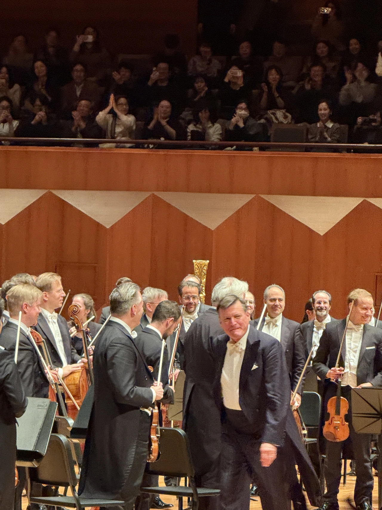 브람스의 완성도 높은 작곡 기법과 틸레만, 빈필의 집중력과 노련함이 하나로 맞물리자, 압도감은 객석까지 그대로 전해졌다. 곡이 끝나는 순간 기립박수가 터져 나왔다. 나 역시 일어났고, 음악에 대한 경외와 존경심이 올라온 순간이었다. 이날의 빈 필 사운드는 단순히 훌륭하다는 말로는 부족했다.. 스트링의 소리결은 부드럽다 못해 광택을 만들었고, 목관은 둥글고 따뜻하며 군더더기 없이 선명했고, 그 담백한 음색이 스트링의 금빛 결과 조용히 어우러졌다. 금관은 필요 이상의 힘을 쓰지 않으면서도 무게감 있는 깊은 색조를 유지해 전체 사운드에 단단한 중심을 놓아주었다. 이 모든 요소가 지나치게 드러나지 않으면서도 자연스러움을 이룬다.