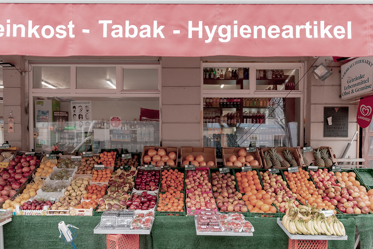 소비자가 모든 과일을 한눈에 볼 수 있도록 과일상자를 눈높이에서부터 비스듬히 기울여 허리선으로 내려오면서 점차 완만하게 놓았다. 다양한 과일들이 가지런히 정렬된 모습을 보면 고르는 재미뿐만 아니라 보는 즐거움마저 느껴진다. 심지어 이런 진열 방식은 베를린 시내를 걷다 보면 어디에서나 쉽고 흔하게 볼 수 있다.