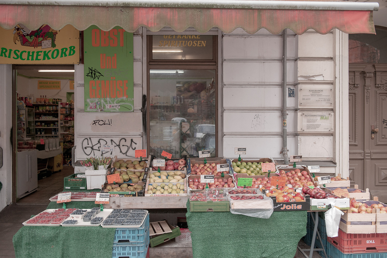 틈나는 대로 과일가게에 집중했다. 2년 만에 만지는 카메라는 낡았고 셔터를 누르는 건 어색하기만 하다. 낯선 환경에 움츠러든 마음을 풀기 위해 과일 진열대를 찍으며 차근차근 사진 찍는 재미를 찾았다. 잊고 있던 감각들이 서서히 일어나는 기분이 든다. 잘 정돈된 과일 진열장은 10년 전 그대로였다. 베를린 과일가게처럼 여전함, 한결같음을 유지하는 것만큼 멋진 일도 없는 것 같다.