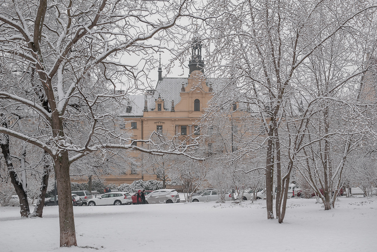 3월 어느 날 아침, 눈이 펑펑 내렸다. 빨간 지붕은 하얀 눈으로 덮였고 모든 소리는 내리는 눈에 묻혀 낮게 울려 퍼진다.