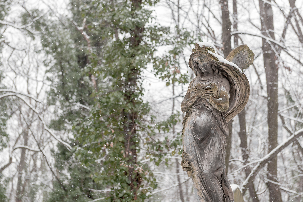 눈 쌓인 묘비의 고요한 침묵 속에서 죽음에 대한 그들의 태도와 삶의 흔적들에 귀를 기울였다. 거대한 깃털 펜을 쥐고 있는 여신의 조각상은 우아함과 역동성이 살아있다. 햇빛을 가리는 여인의 망토 위로 마치 생전의 업을 받쳐 올린 듯 소복이 눈이 쌓여간다.