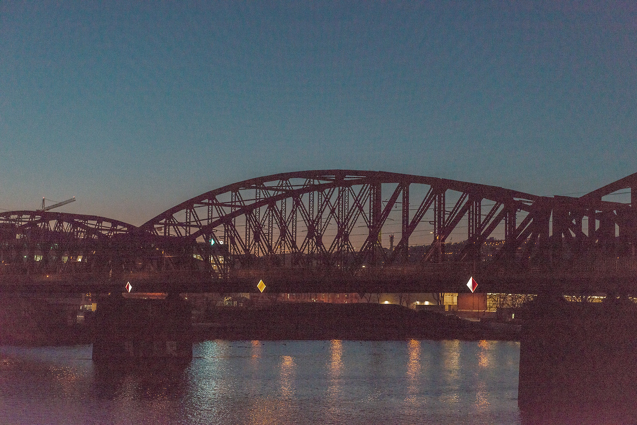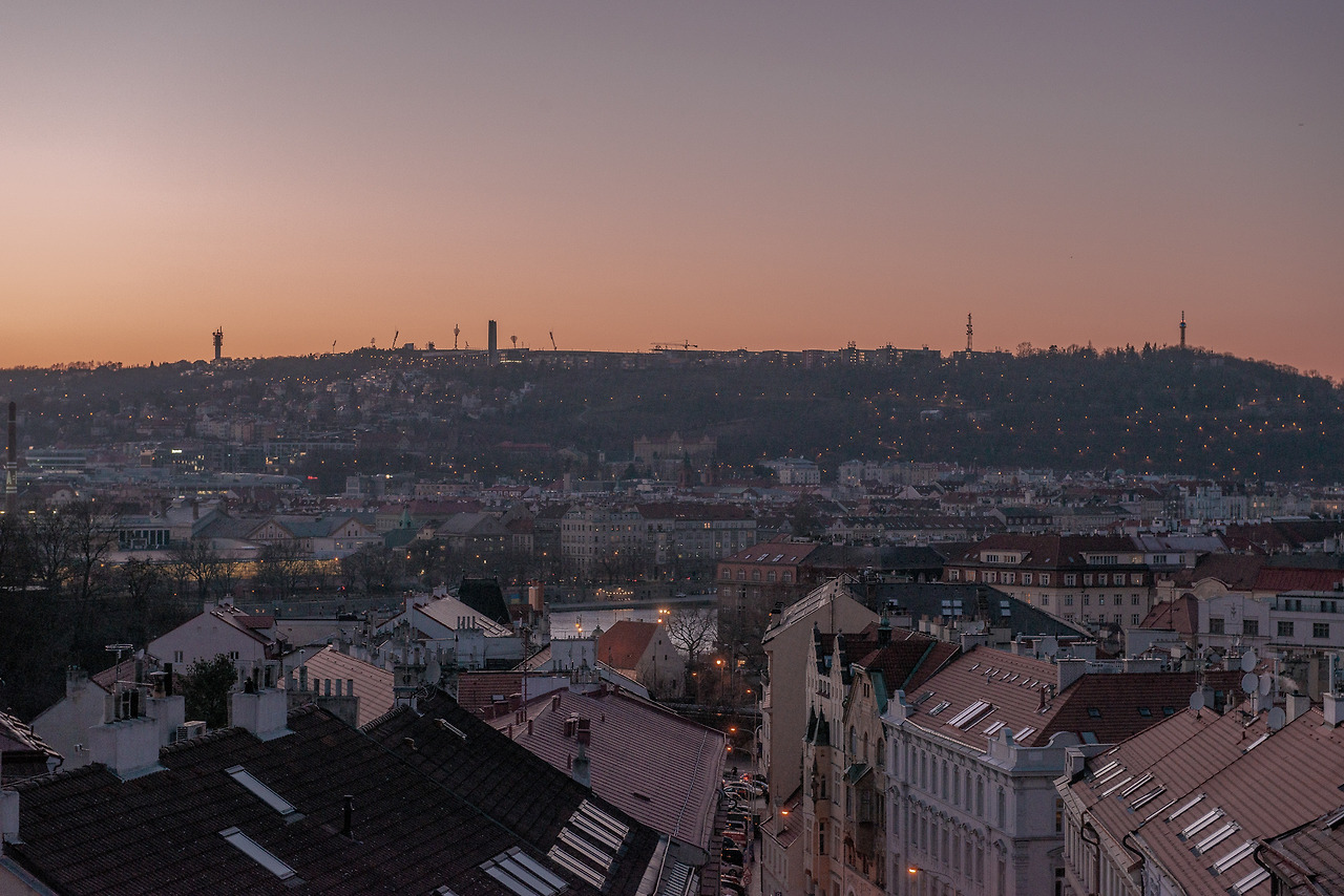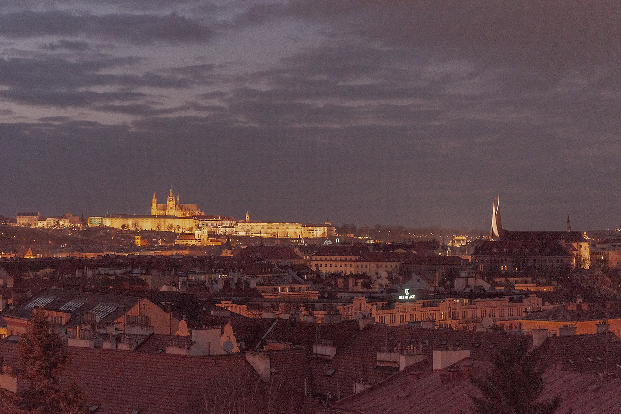 도시가 잘 보이는 조용한 장소에 자리를 잡았다. 해 저무는 프라하의 인상을 오랫동안 지켜봤다. 느리고 조용한 시간, 이곳에 두 발을 딛고 서 있는 시간이 가만히 느껴졌다. 어둑한 하늘 아래 가로등 불빛이 도시를 밝히고 지붕에는 밤이 드리웠다. 도시의 명암이 서서히 드러나자 아름다운 프라하의 밤이 그려진다.