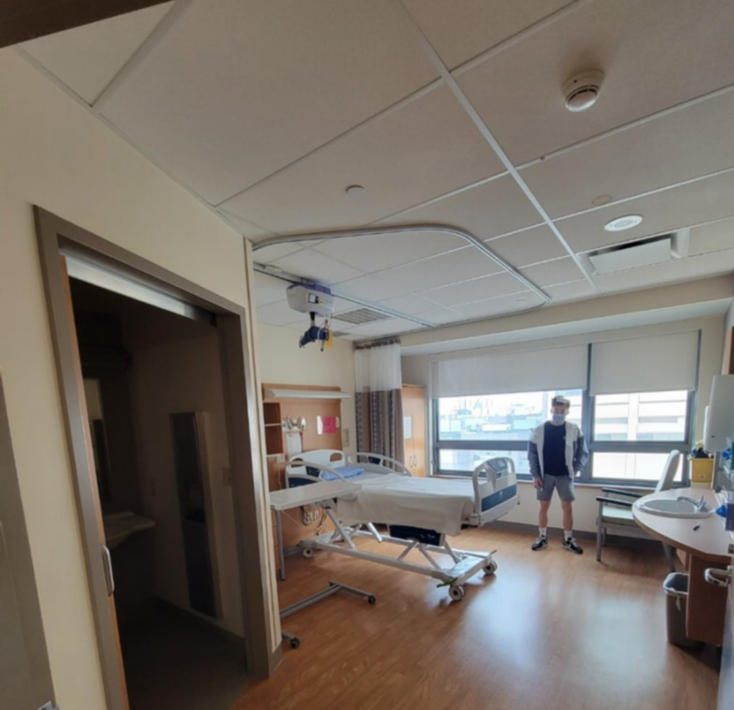 뇌 재활 병원은 10층에 위치하고 있었는데 코로나 기간이기 때문에 3일간 자가 격리를 했어야 했다. 구급차로 같이 온 동생은 출입이 가능했는데 어차피 면회 시간이 종료되면 집으로 가서 사람들과 접촉하는데 자가 격리에 무슨 의미가 있나 싶었지만 ‘이게 캐나다였지’라며 웃어넘겼다. 아무 말도 하지 못하겠던 게 재활 병원에 있던 나의 공간은 마치 영화에서 보던 호텔 스위트룸 같았다. 창 밖으로는 토론토 중심가가 보였고 12평 정도 되는 크기에 침대 한 개와 서랍장이 양 옆으로 놓여있었다. 게다가 그 넓은 방이 나 혼자 쓰는 공간이었기 때문에 더욱 편하고 좋았다.