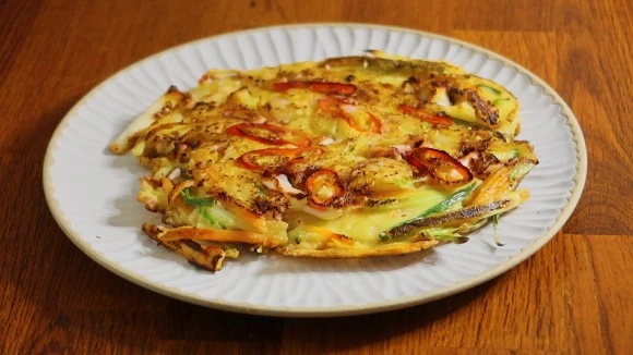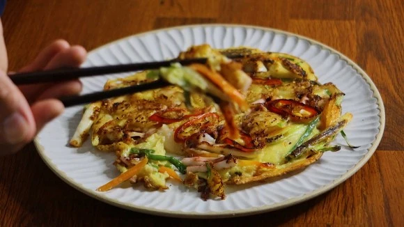노릇노릇하고, 고소한 오징어향이 가득 나는 해물파전이 만들어졌다. 파전을 만드는 방법은 다양하고 수없이 많다. 그중에서도 설거지 거리도 적게 들고, 간단하게 만들 수 있는 해물파전 레시피를 준비했다.