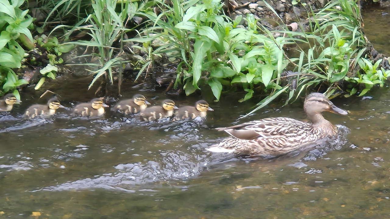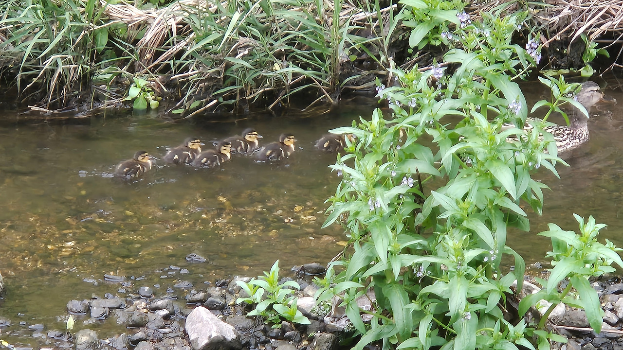 외톨이가 되어서 물살에 쓸려가는 새끼를 따라 몇몇 아주머니들이 내려가면서 어디까지 가는지 지켜보는데 멀리 까지 가지는 않고 풀숲으로 들어갔다고 한다. 아직 살아있다고는 하지만 엄마가 없이 버틸 수 있을까 하는 염려스러운 마음으로 다시 길을 올라오다가 앞서간 오리 가족을 만났다