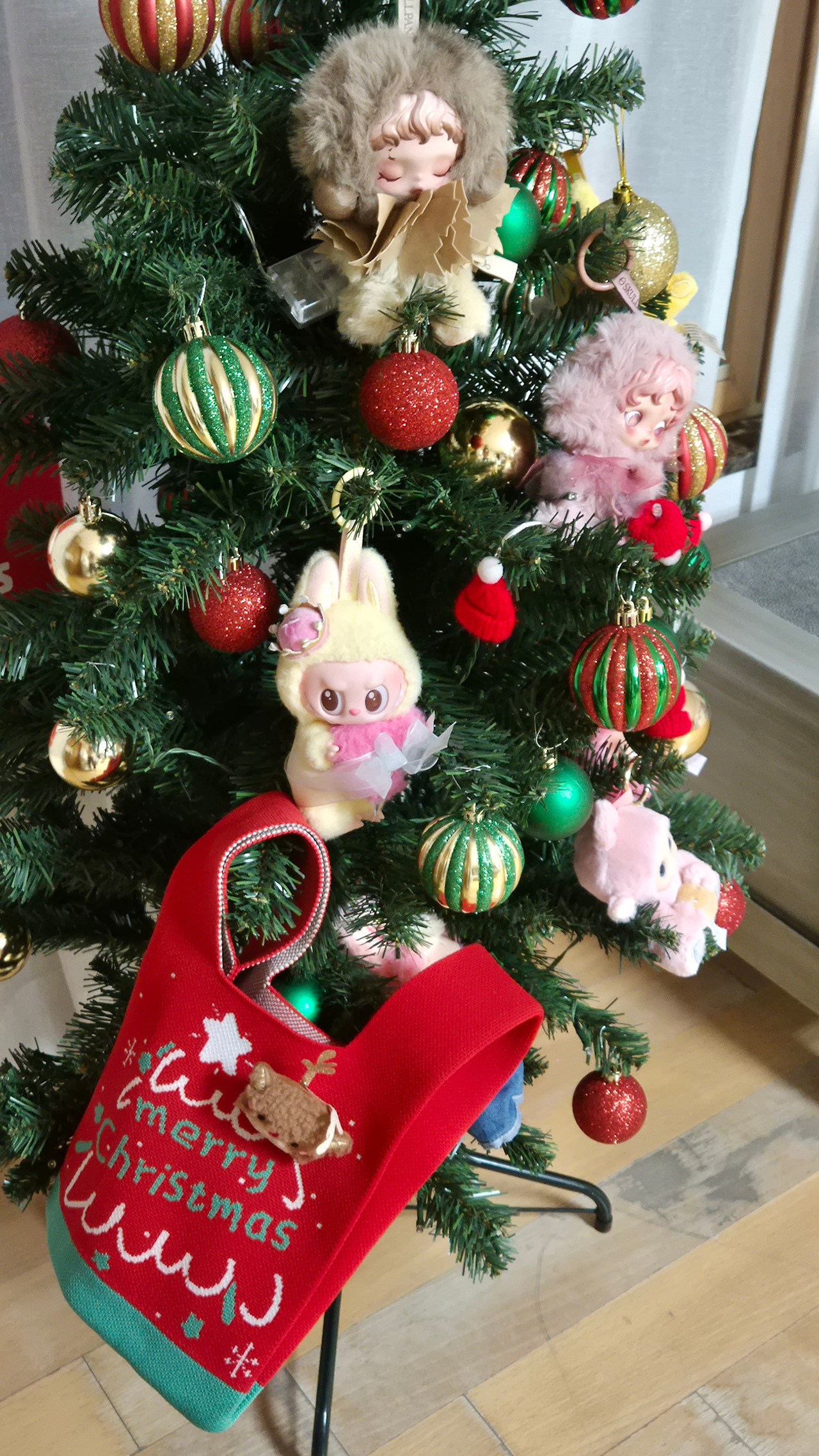 아직 산타를 믿는 순수함과 알파세대들의 현실감 있는 요구에 웃음이 나오면서 현금이라기에 조금 작은 가방을 걸어놓고 사진을 찍었다.