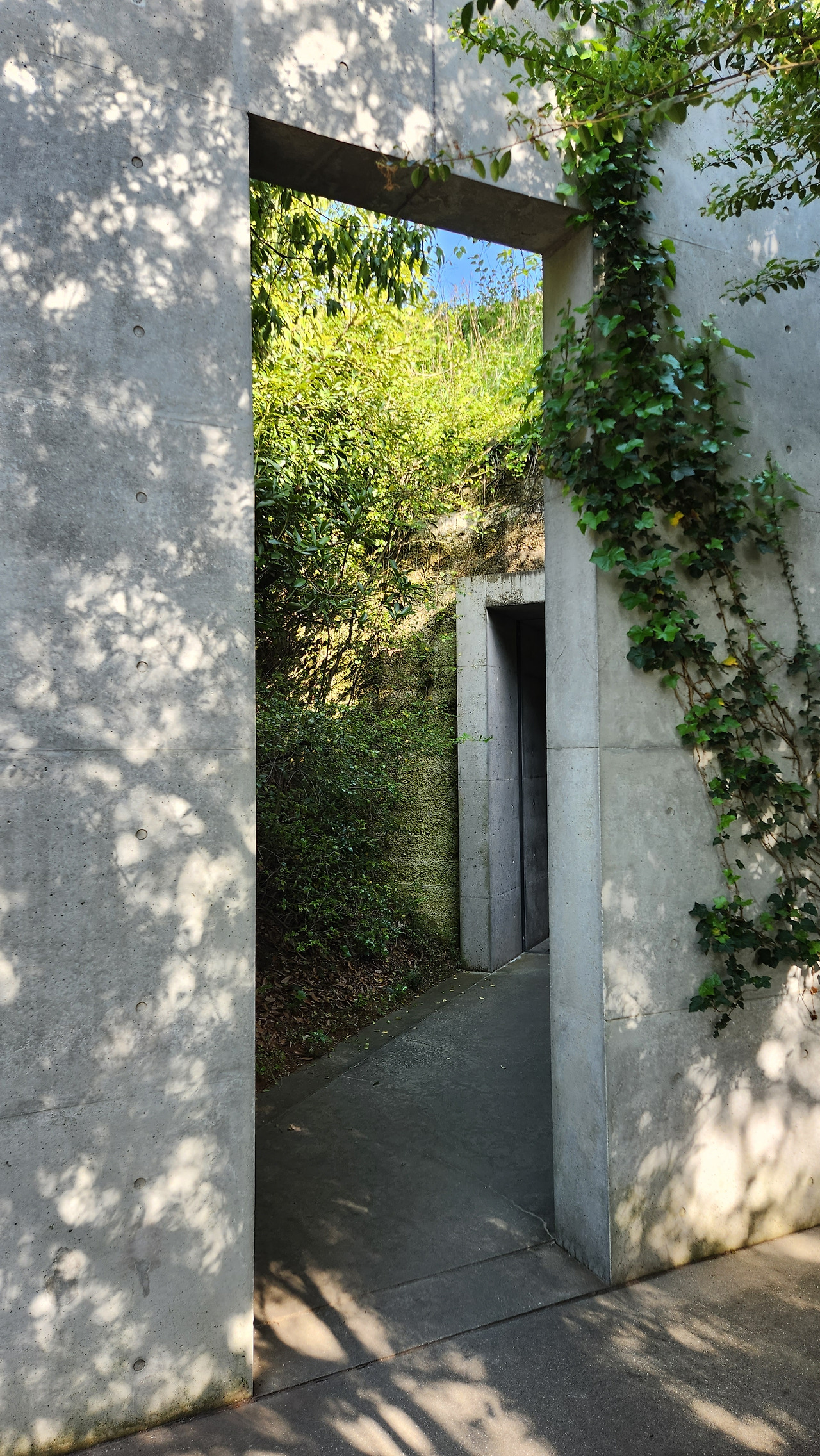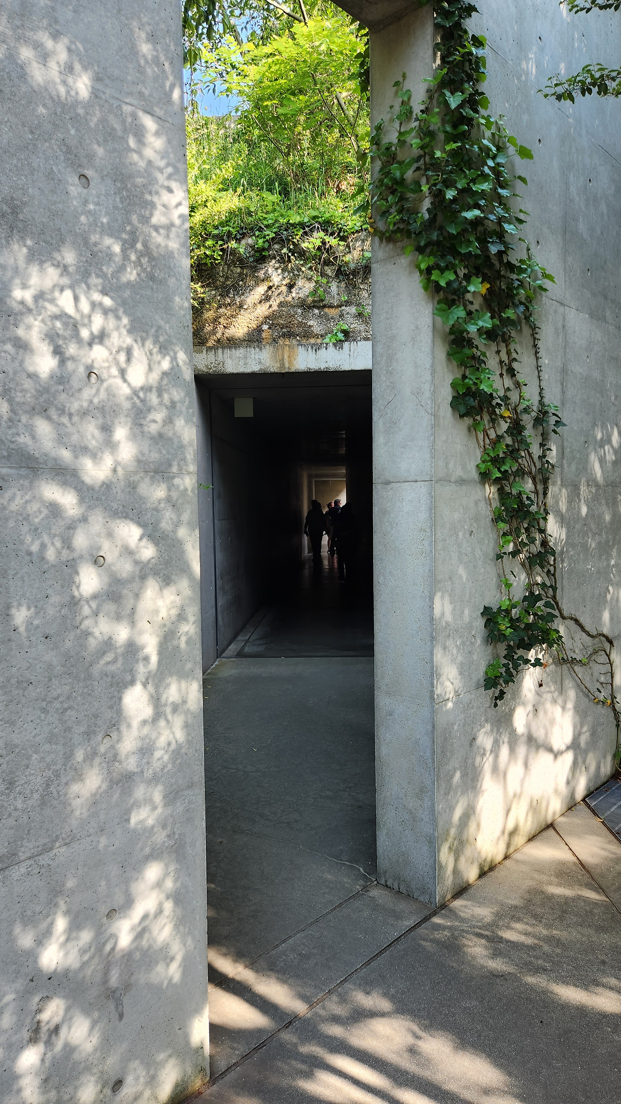 이우환 미술관에서 위쪽으로 10분 정도 걸어서 올라가면 지중미술관 매표소가 나옵니다. 지중미술관이라고 글씨가 한쪽 벽면을 채우고 있었습니다. 왠지 여행지를 나타내는 표시 앞에서는 사진을 찍고 싶은 욕망이 나타납니다. 벽면에 매표소에서 입장권을 구매하고 다시 위로 5분 정도 올라가다 좌측으로 지중미술관의 입구가 보입니다. 5월 둘째 주에 방문하였지만 조금 더운 편이었습니다. 지중미술관이 벽면의 넝쿨이 감싸고 있어 인상적이었습니다.