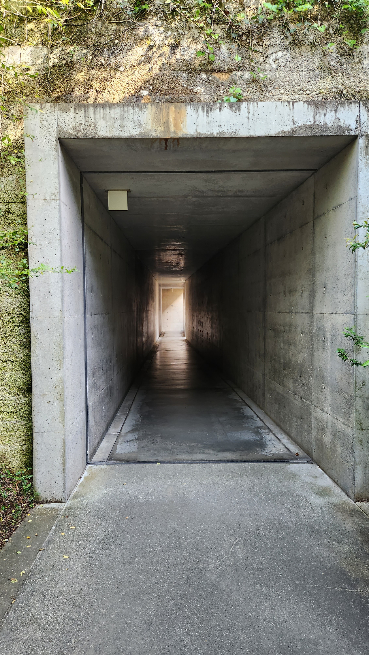 지중미술관으로 올라가는 가로변에 꽃심기로 가로변 정비를 한참하고 있었습니다. 예쁜 꽃들이 즐거움을 더했습니다. 지중미술관은 클로네 모네의 <수련 연못>의 의미를 넓히려는 생각에서 시작되었습니다. 지중미술관에는 미국의 현대 미술작가인 '월터 드 마리아'와 '제임스 터렐'의 작품을 보고 느낄 수 있습니다. 지중미술관은 건축물이 땅속에 있고 밖으로 보이는 부분은 없기 때문에 지중미술관으로 불린다고 생각했습니다. 지중미술관을 걷는 동안에 미술관이 곧 예술이라는 것을 느끼게 됩니다. 우리는 보이는 것만 보려고 하는데 보이지 않는 곳에 미술관이 있다니 안도타다오의 세계관을 엿볼 수 있습니다. 올라갔다 내려가면서 건물이 주는 새로움은 생동감을 줍니다. 무언가 미지의 세계가 있는 듯한 기대감으로 가득했습니다. 건물은 자연과 늘 친화적입니다. 자연 속에 건물이 있지만 건물은 자연을 품고 있습니다. 하늘과 바람, 빛이 어우러진 공간은 노출 콘크리트가 더욱 부각되는 효과를 보입니다. 네모난 공간에 네모나지 않은 예술 작품들이 극대비 된다고 생각됩니다. 지중미술관 안에 건물로 둘러싸인 네 개의 공간이 있습니다. 바닥은 석회암이 깔려있고 삼각형 모양을 하고 있으며, 비스듬히 올라가는 틈으로 빛이 들어옵니다. 그 공간은 전시 공간으로 가는 길목입니다. 전시실이 평면으로 있는 게 아니라 오르락내리락하다가 동굴 같은 곳으로 들어가면 전시관이 나타납니다.