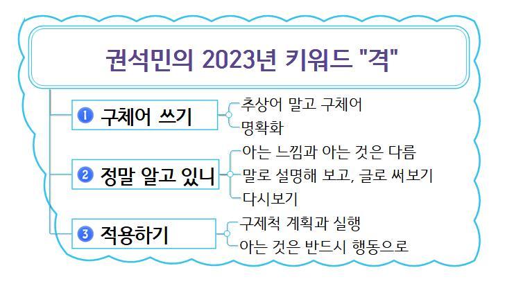 2022년을 살아오면서 평소 늘 내게 질문한 것이 ‘정말 알고 있니'였다. 아는 것 같은 느낌과 정말 아는 것의 차이는 다른 사람에게 설명할 수 있는가 아닌가로 구분할 수 있다. 머릿속에서는 맴돌았어도, 말로 설명해 보면 왜곡되기도 하고 잘 설명하지 못하는 경우도 있었다. 제대로 알고 있지 못하고 것을 깨닫는 순간이었다. 발표하거나 강연을 하기 전에 ‘그냥 어떻게 되겠지’ 하면서 연습 없이 나서기도 했었다. 말로 표현해 보고 글로 써 본 후 발표에 임해야 한다. 몇 번이고 다시 봤을 때 생각은 더 단단해진다. 다른 사람에게 핵심을 잘 전달할 수 있게 된다. 그렇지 않으면 중언부언하게 될 것이다. 2023년은 내 생각과 감정을 분명하게 알고 표현하는 사람이 되고자 한다.