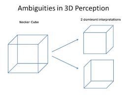 사용자는 2D보다 3D로 표현된 것을 더 선호합니다. 그러나, 현실에서는 3D의 형태를 이해하는데 더 많은 주의력 자원 (attention resource)이 필요합니다. 그래서 인지하는데 시간이 더 걸립니다. 거기에 더해, 인식의 모호함 (perceptual ambiguity)을 일으키기도 합니다. 그림 3은 하나의 3D 그림이 다양하게 인식되는 예를 보여줍니다.